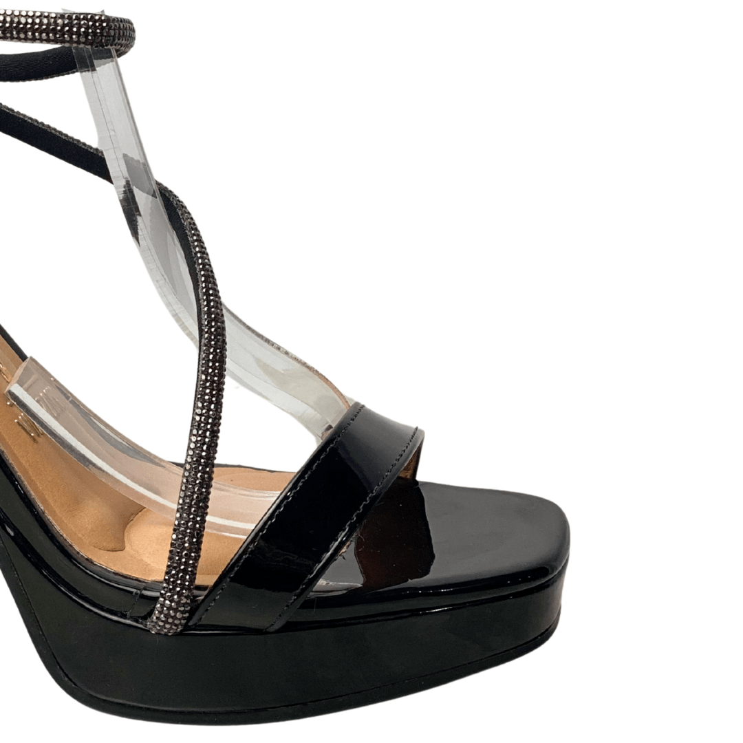 Com certeza! O verniz preto e as tiras cravejadas trazem elegância e sofisticação. -