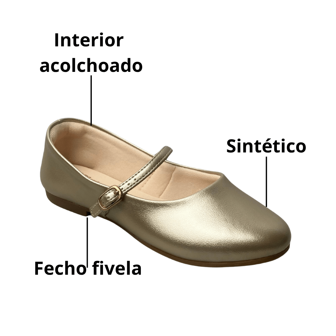 Sapatilha Kidy Infantil Feminina Ouro com Fecho em Fivela