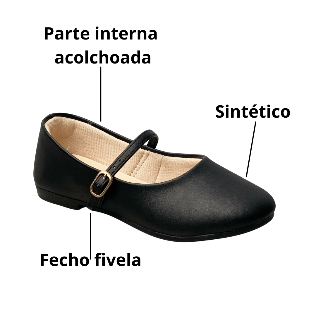 Versátil e charmosa: O design clássico e a cor preta combinam com qualquer look — desde o uniforme escolar até produções para eventos especiais.