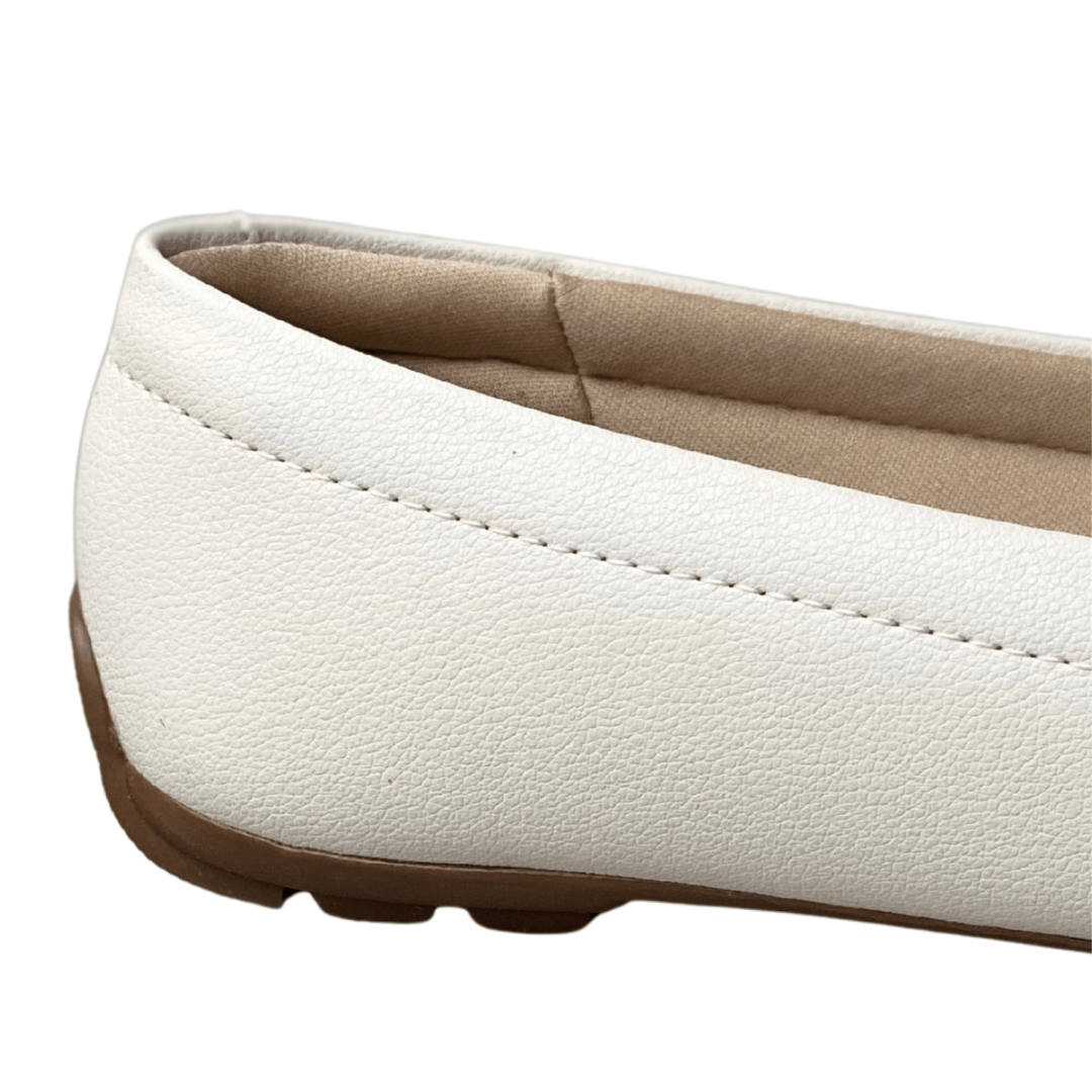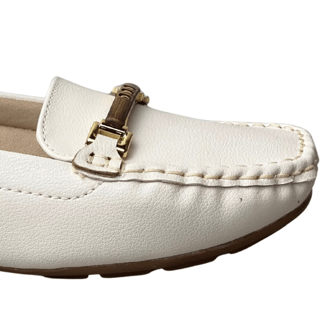 A Sapatilha Modare Feminina Branco Off com Ferragem Dourada é um calçado "estiloso e lindo", ideal para quem busca versatilidade. Seu design inspirado nos clássicos mocassins, somado ao acabamento impecável, faz dela a escolha perfeita para compor looks profissionais ou casuais com extrema elegância.