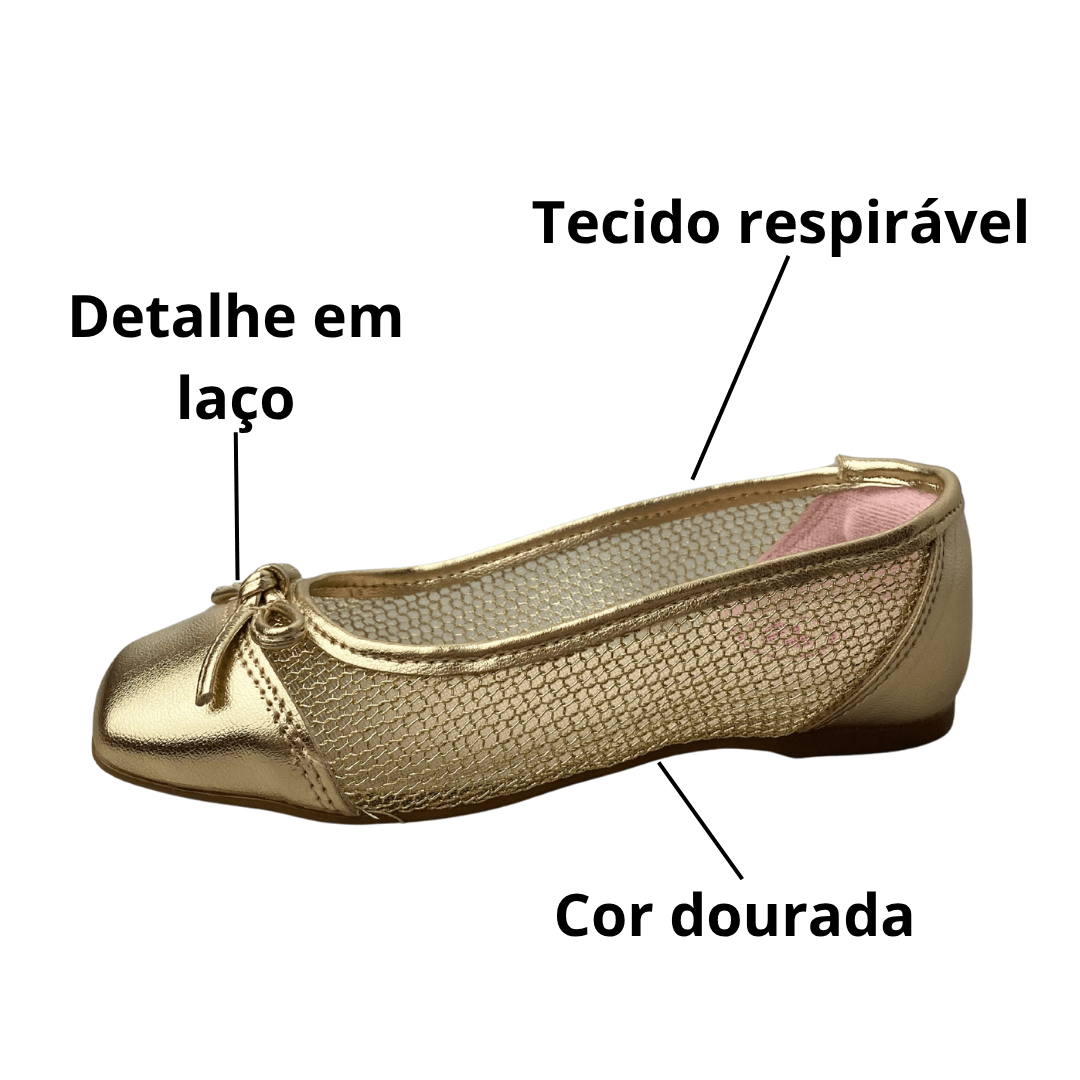 Sapatilha Molekinha Feminina Infantil Dourada com Laço