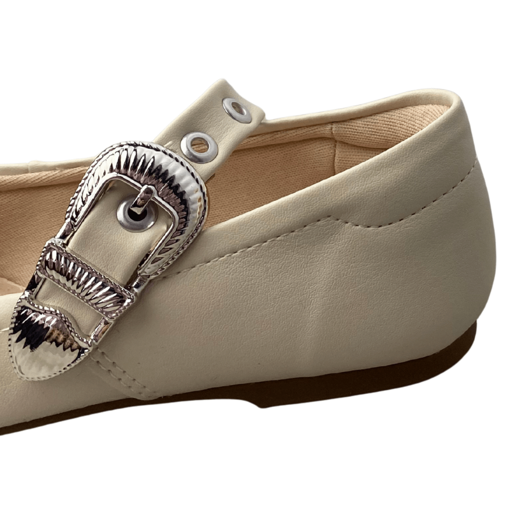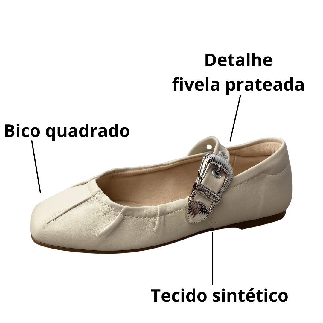 Sapatilha Molekinha Feminina Infantil Off White com Fivela Prateada