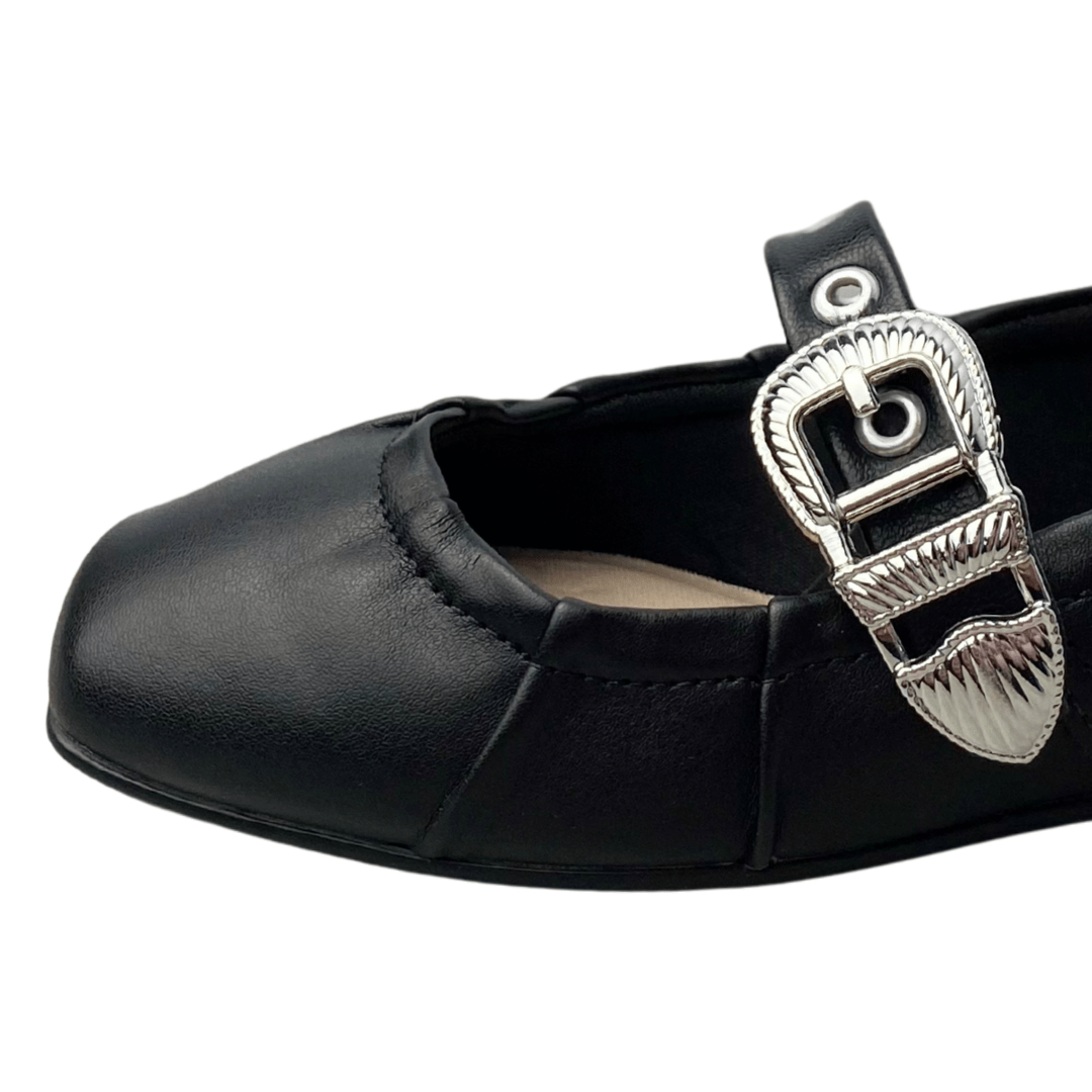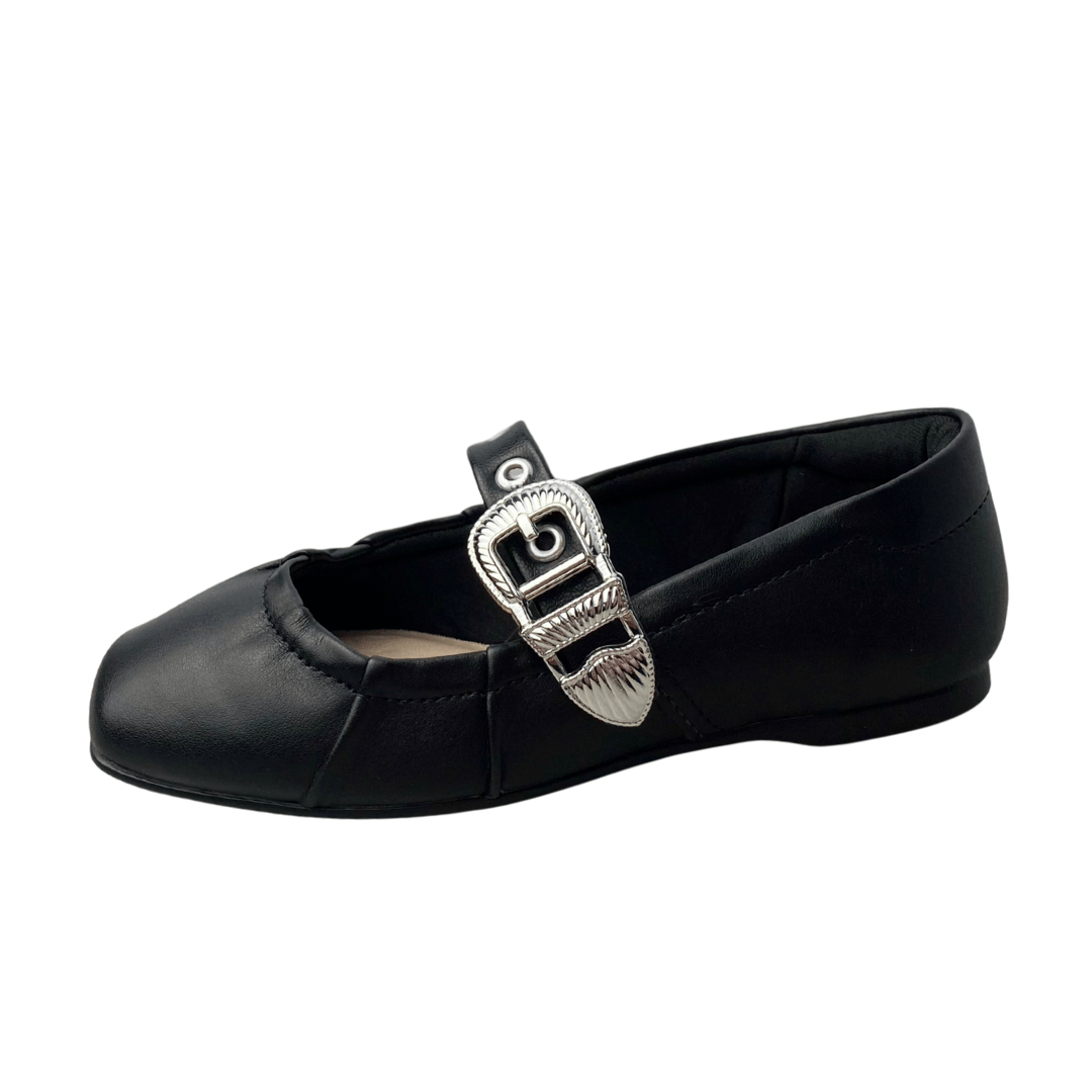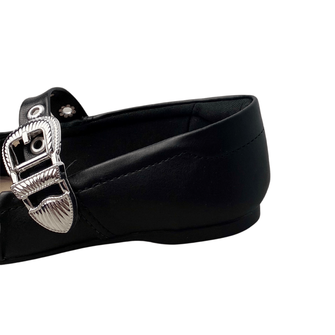 Sapatilha Molekinha Feminina Infantil Preta com Fivela Prateada