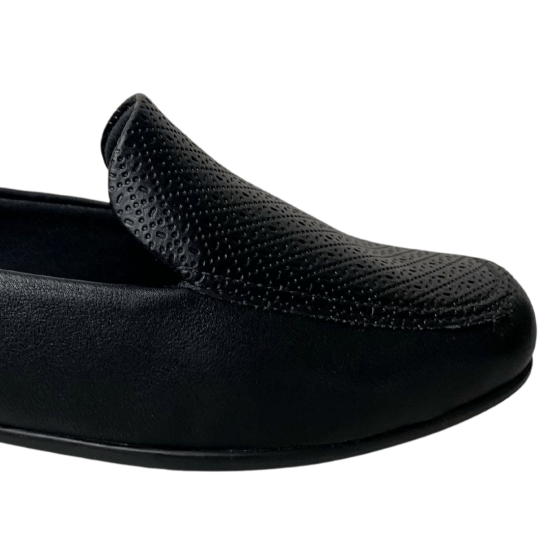 Estilo Texturizado: O detalhe em microperfuros no cabedal adiciona um toque de sofisticação moderna ao preto clássico, além de auxiliar na ventilação interna.
