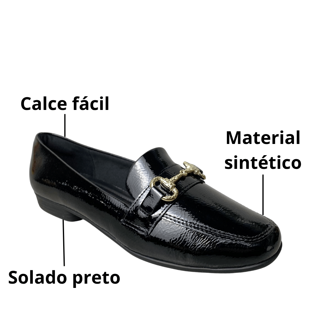 Sapatilha Piccadilly Feminina Preto Ferragem Dourada