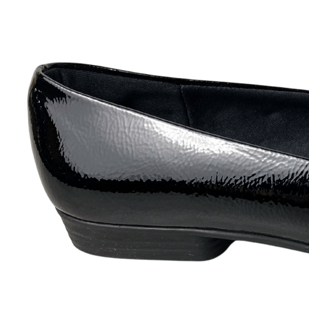 Como limpar este calçado? A manutenção é prática: utilize apenas um pano macio levemente umedecido para remover impurezas e retomar o brilho. Evite produtos químicos abrasivos ou deixar o sapato de molho.