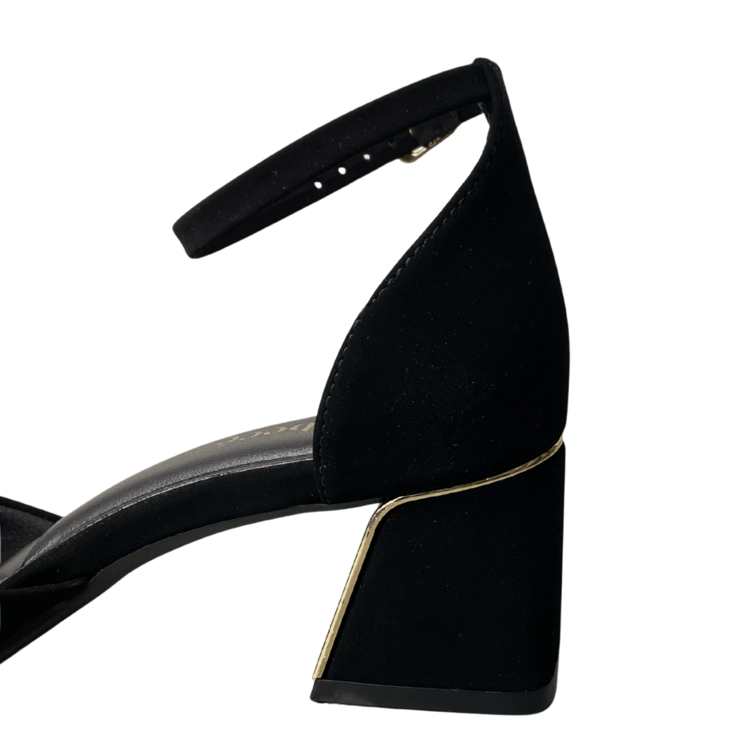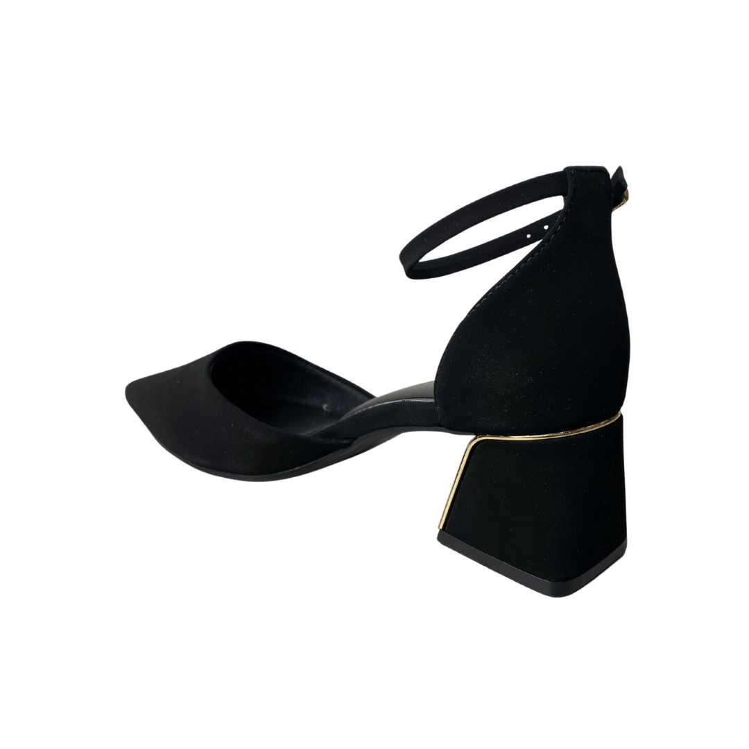 Toque de Luxo: O detalhe metalizado no interior do salto transforma um sapato preto básico em uma peça de design exclusivo.