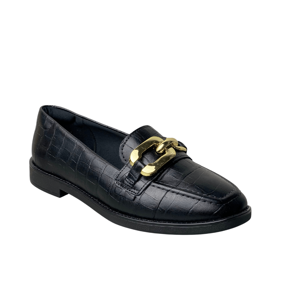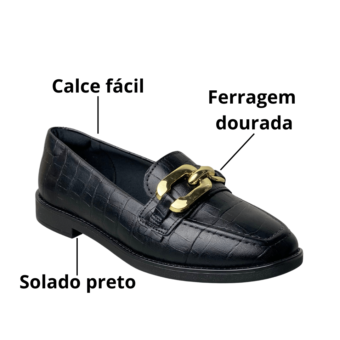 Sapato Beria Rio Feminino Preto Ferragem Dourada