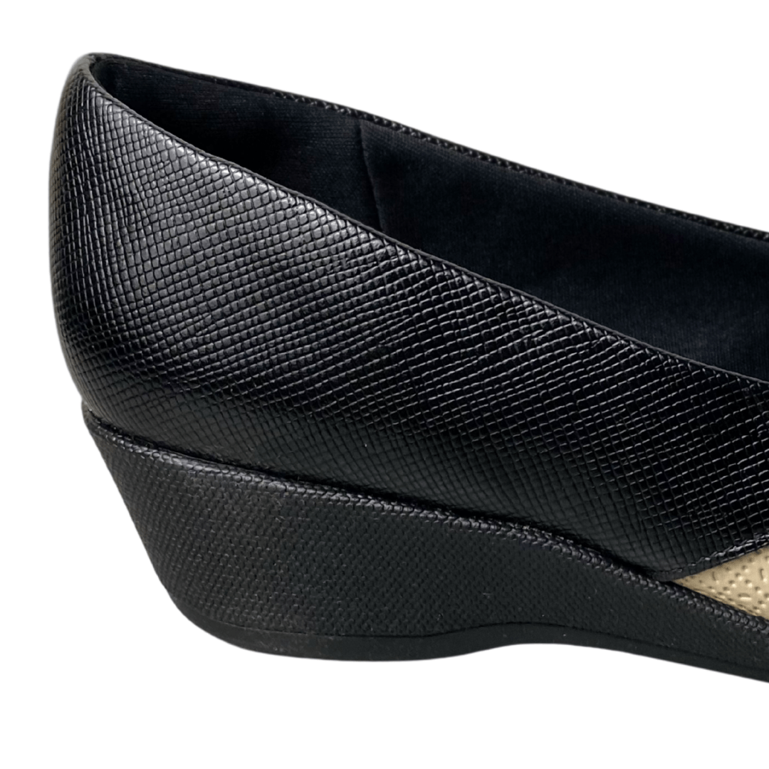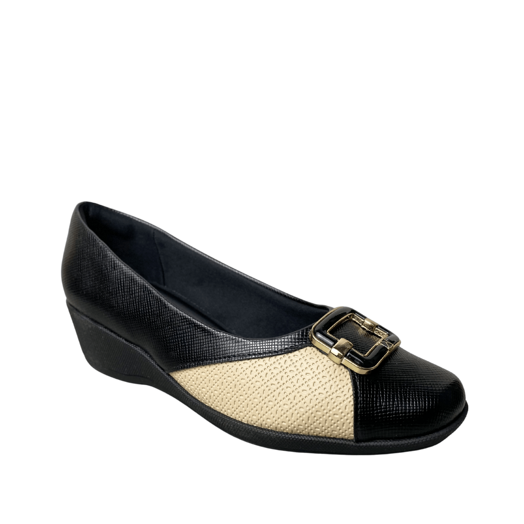 Modelo: Sapato anabela baixo (estilo loafer/pump).
