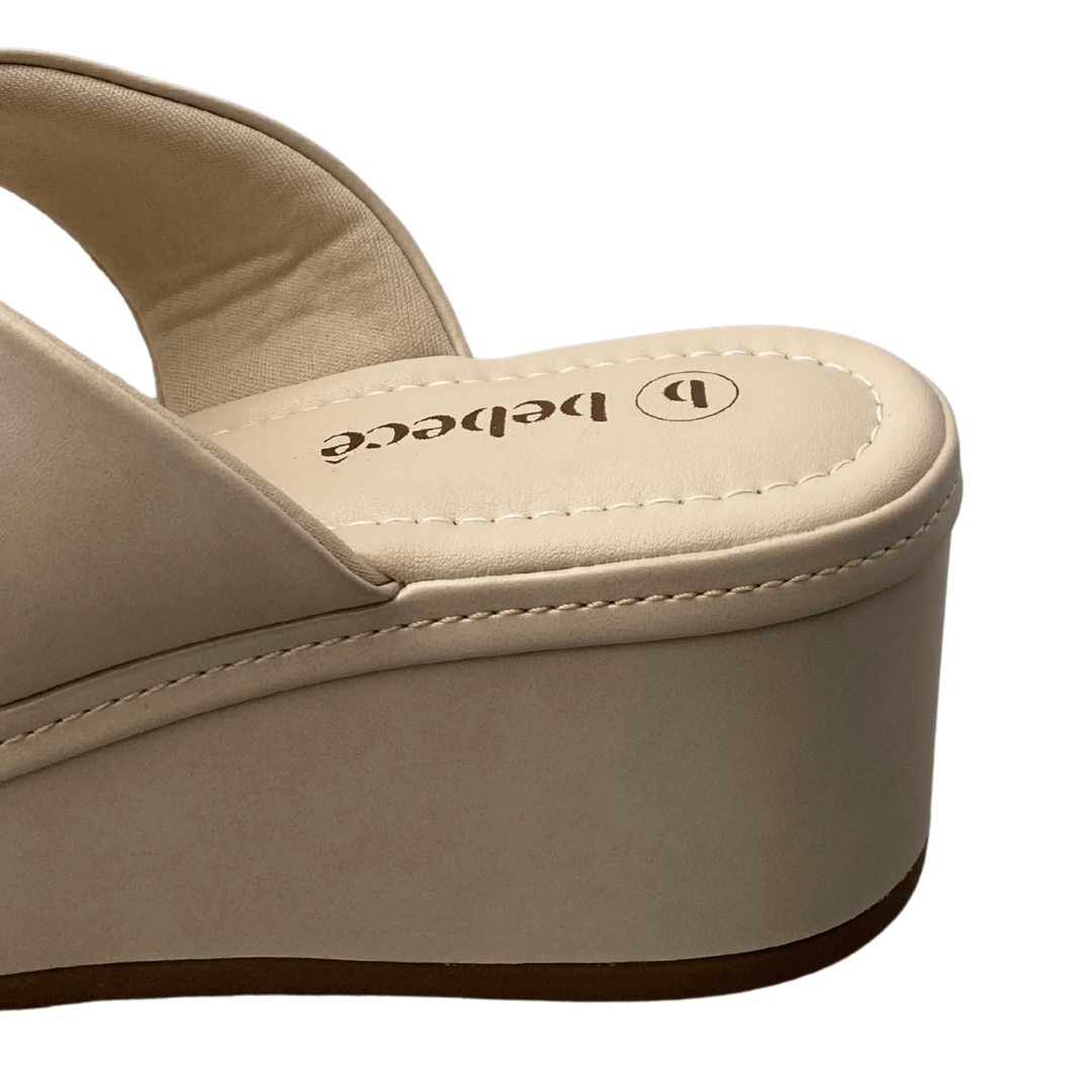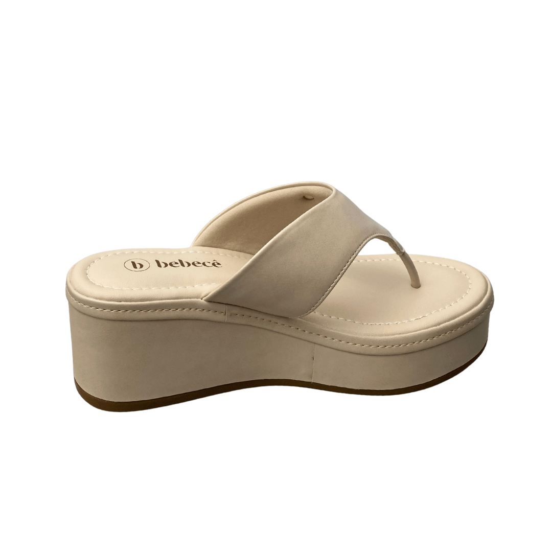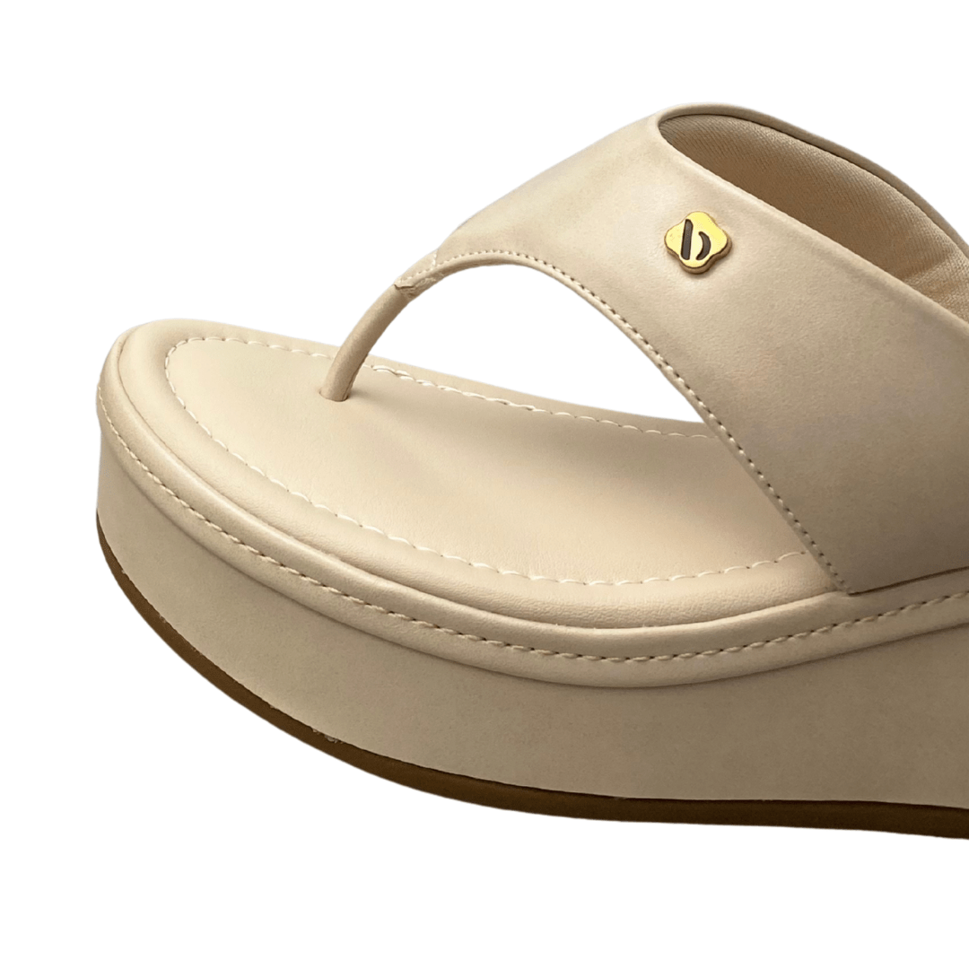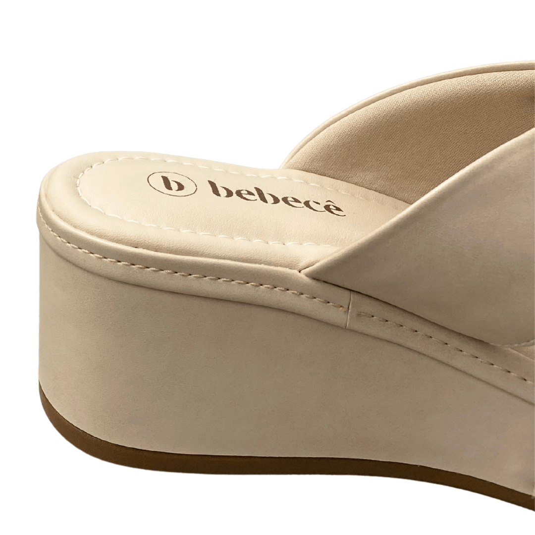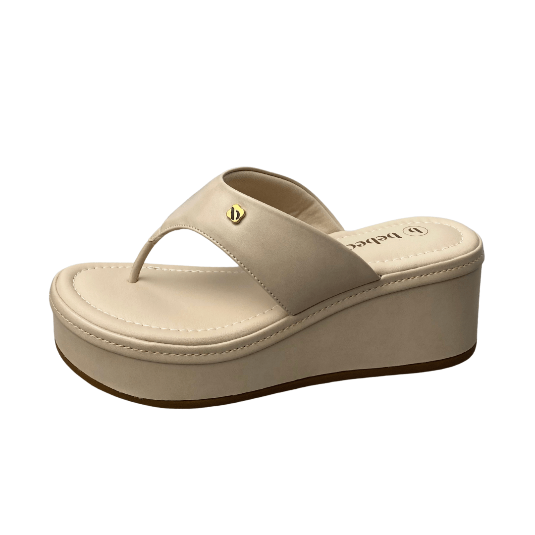 Solado em plataforma anabela, que oferece altura com estabilidade.