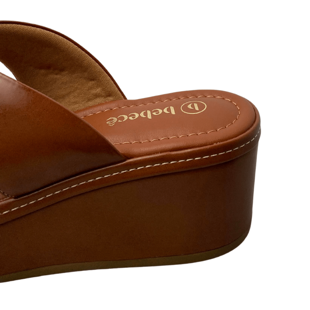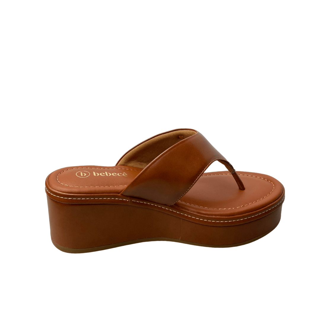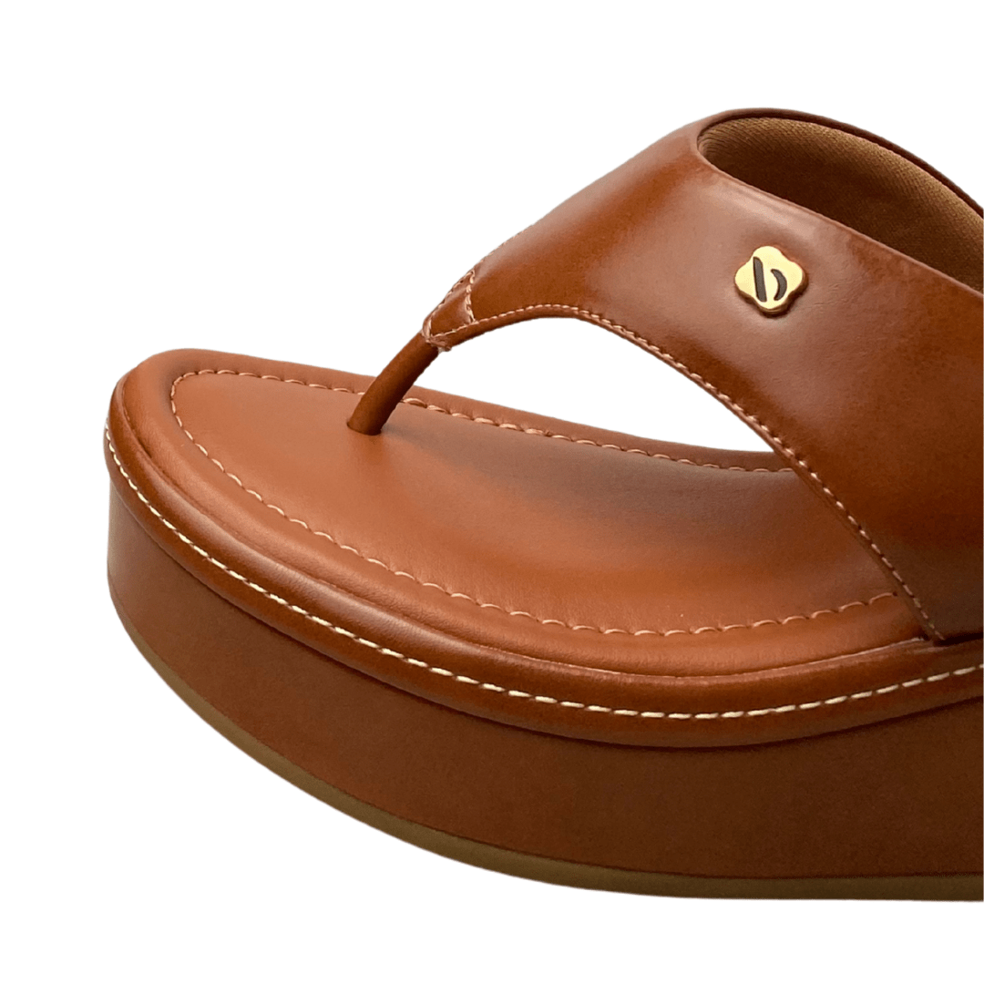 Solado em plataforma anabela, que oferece altura com estabilidade.