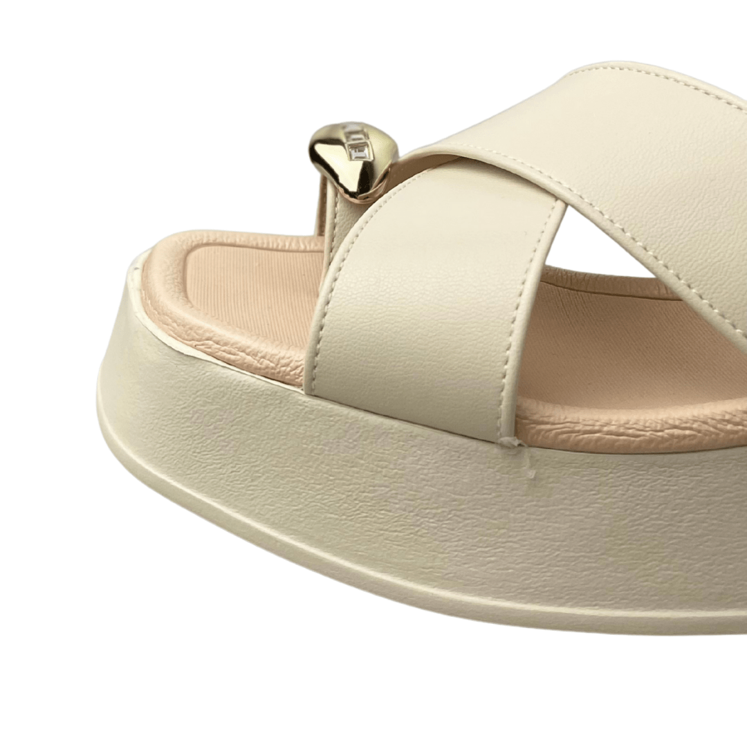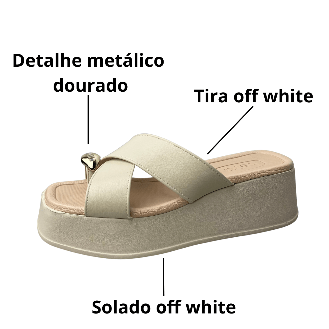 Tamanco Beira Rio Feminino Branco Off com Ferragem Dourada