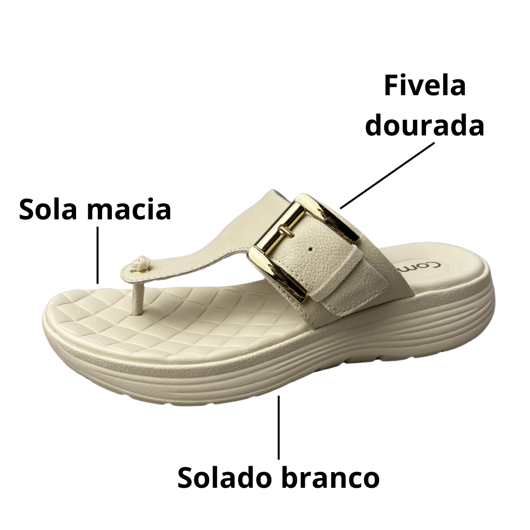 Tamanco Comfortflex Feminino Coconut Fivela Dourada