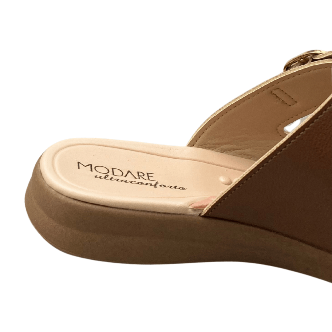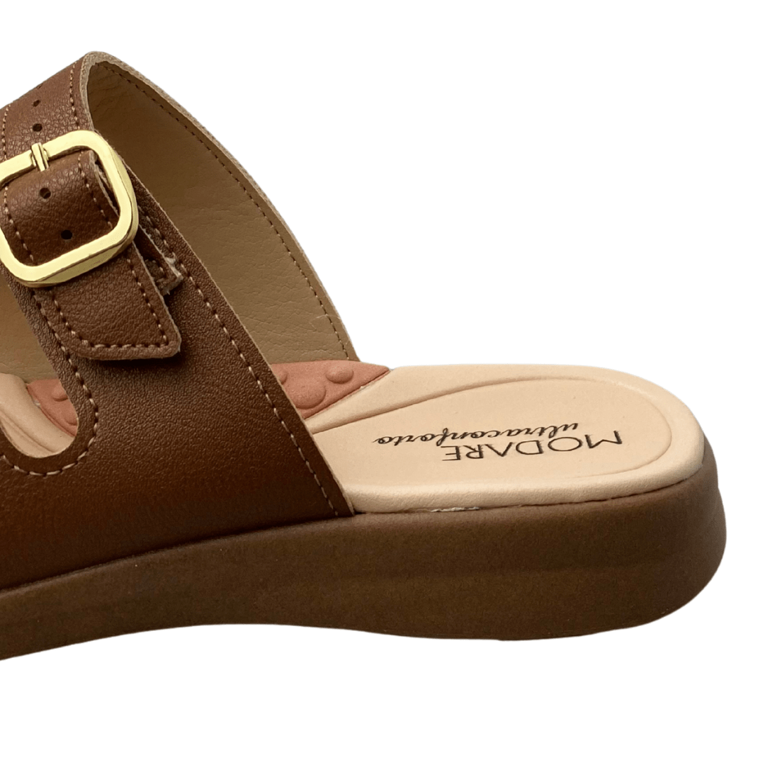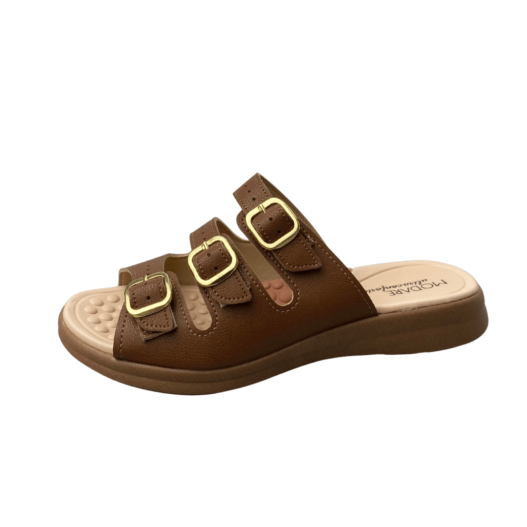 Tamanco Modare Feminino Avelã com Fivelas Douradas – Conforto e Estilo para o Dia a Dia
