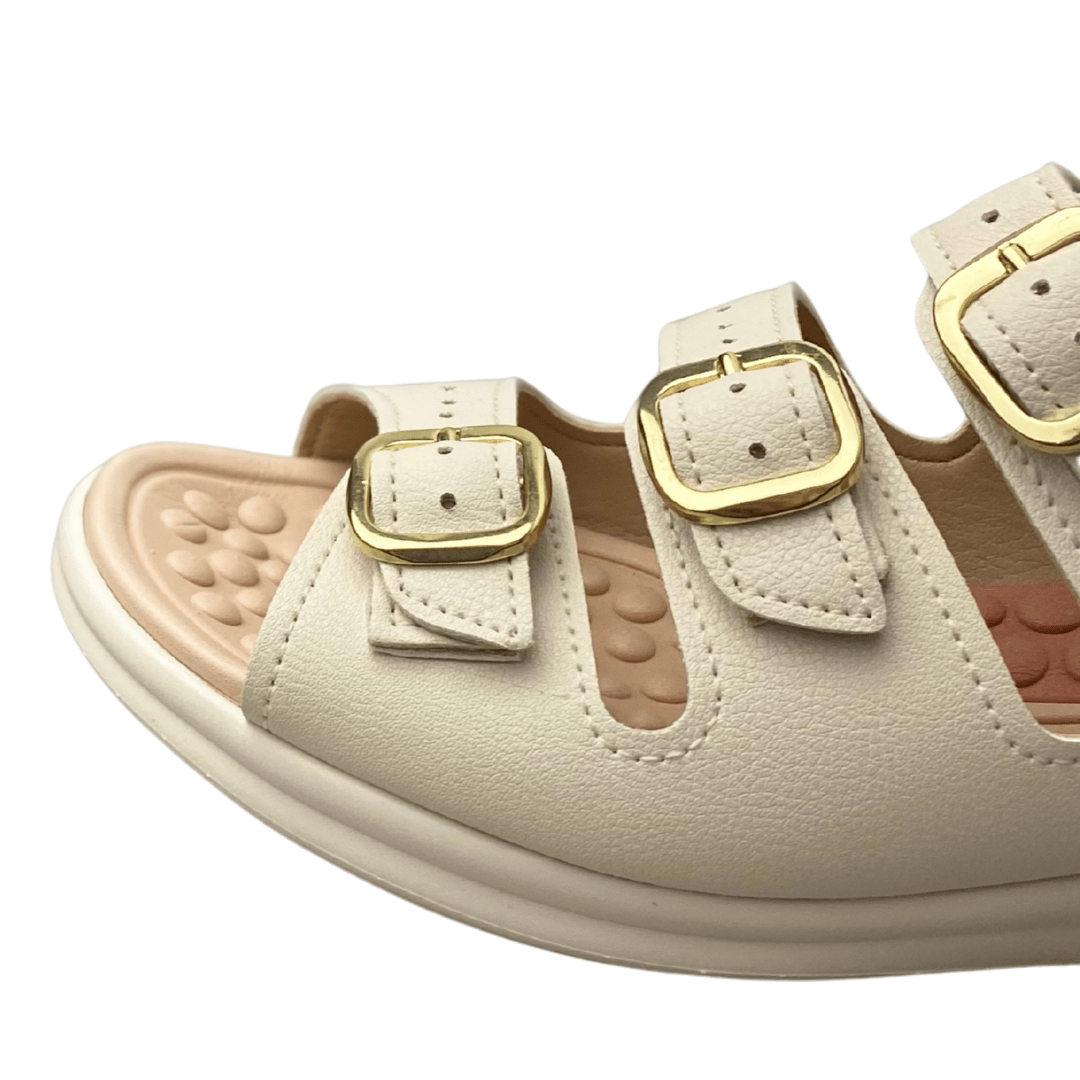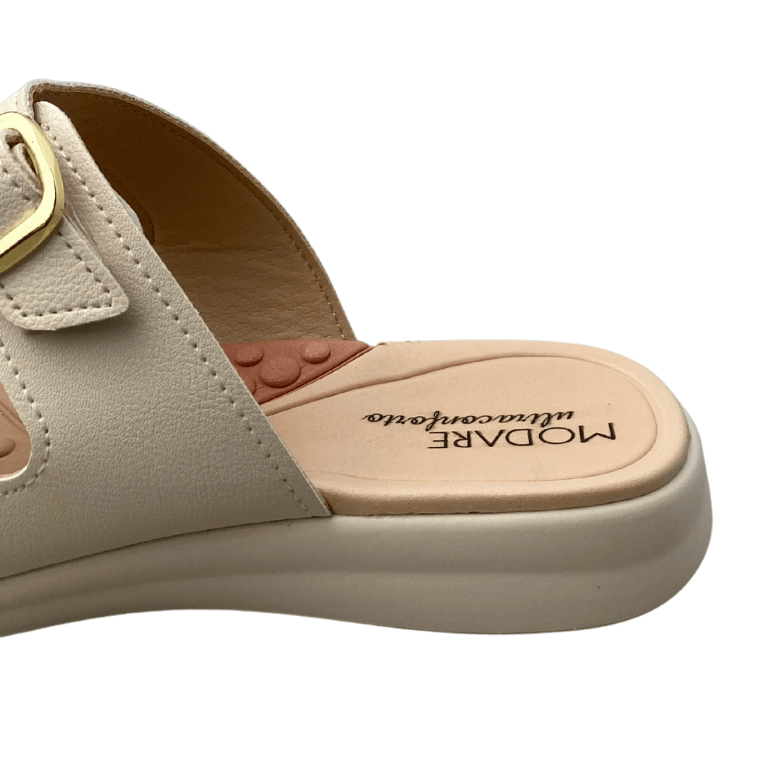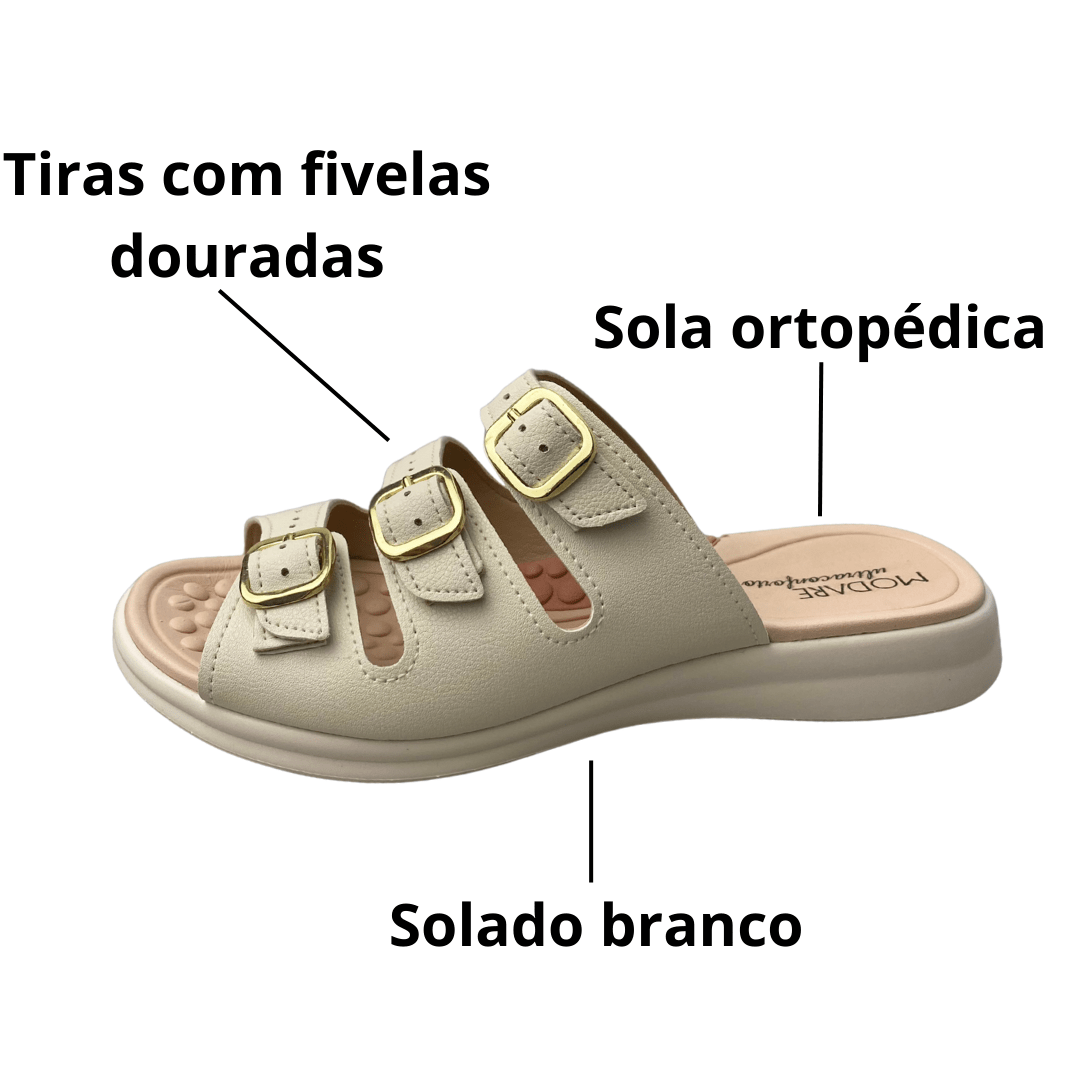 Tamanco Modare Feminino Branco Off com Fivelas Douradas – Conforto e Estilo para o Dia a Dia