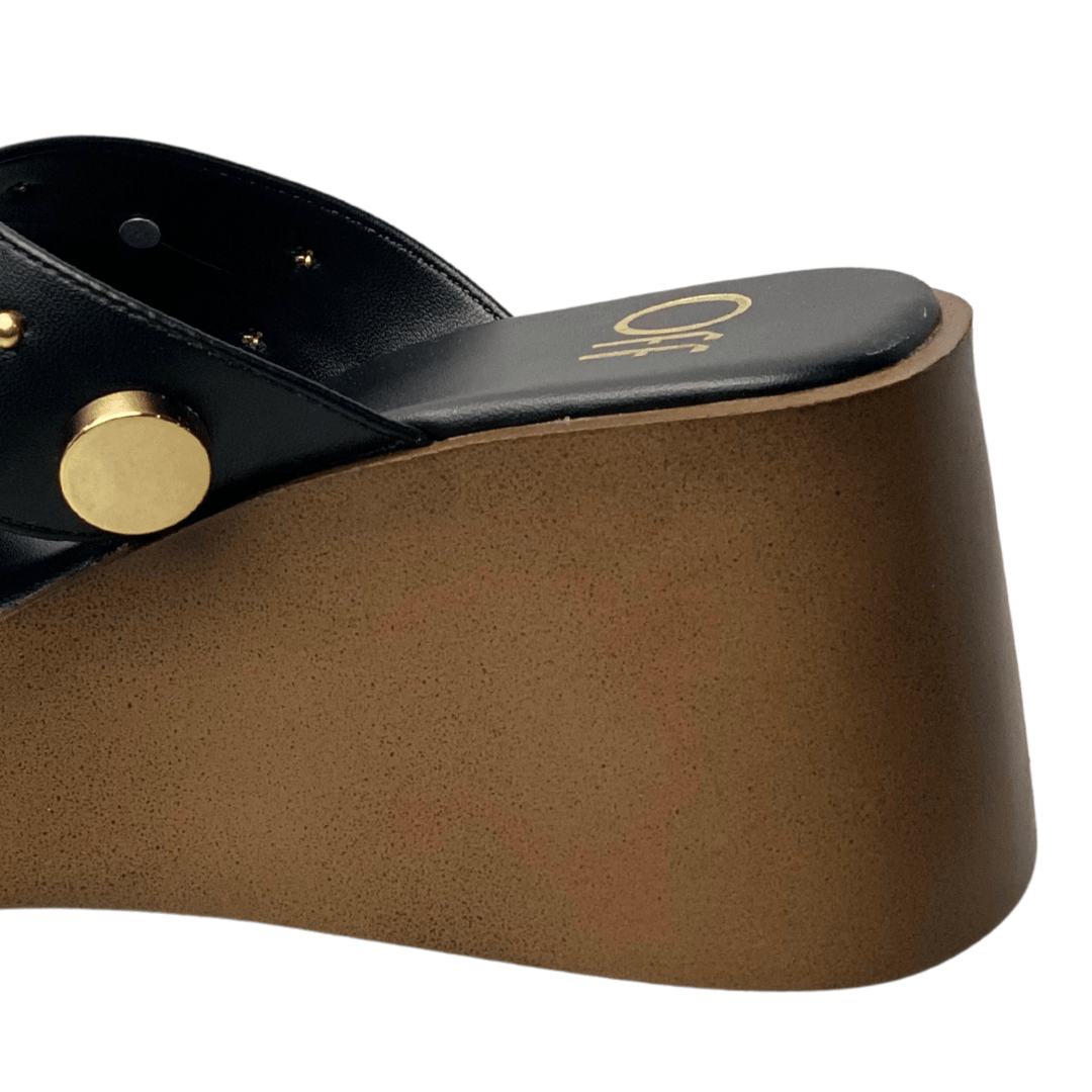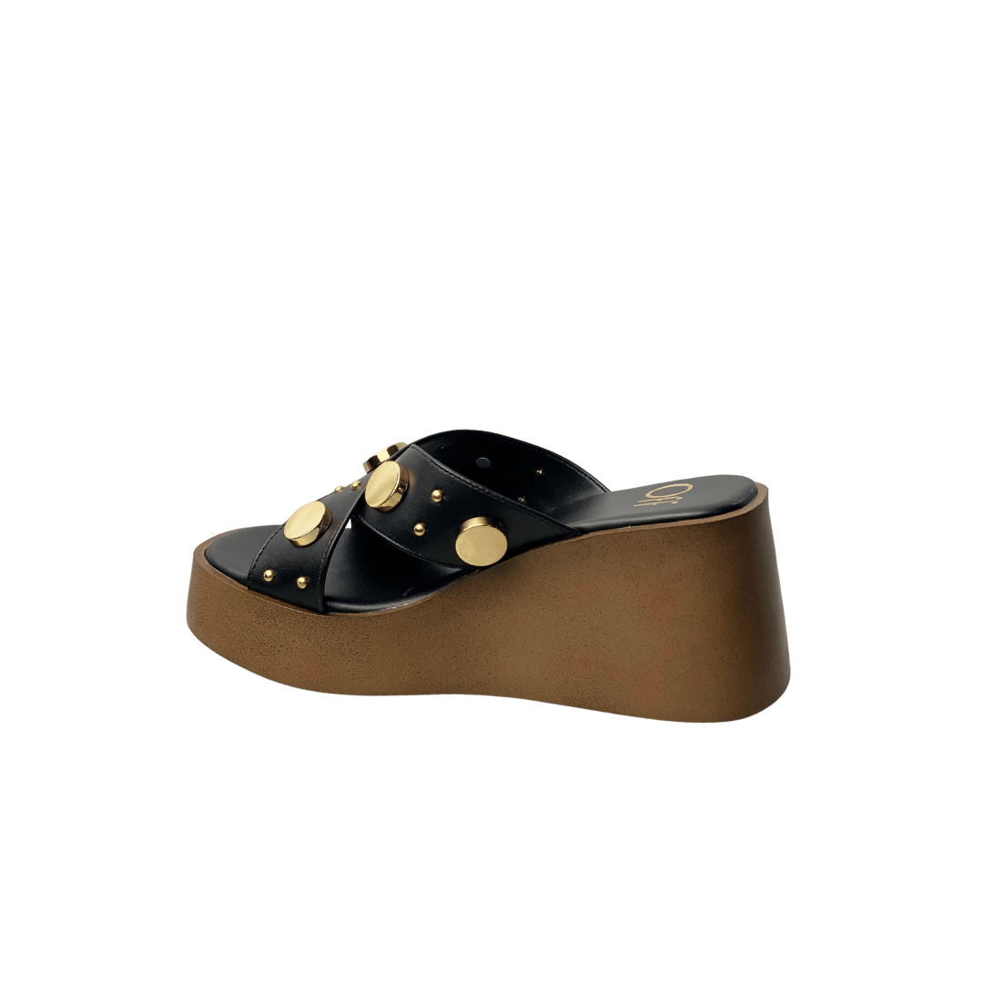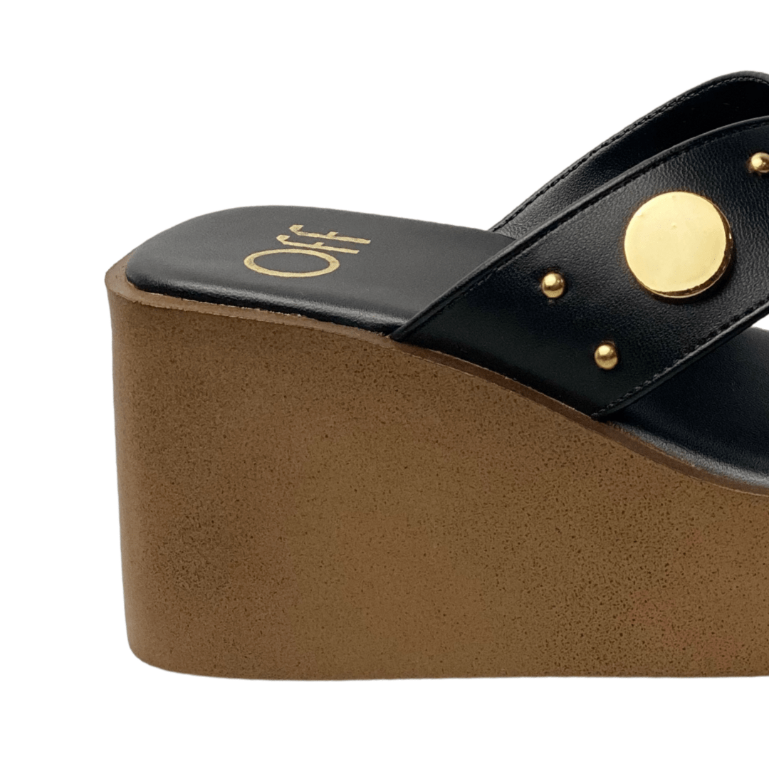 Tamanco Offline Feminino Preto Ferragens Douradas