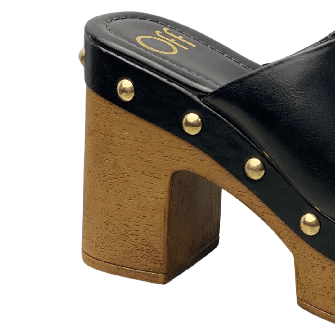 Tamanco Offline Feminino Preto Ferragens Douradas