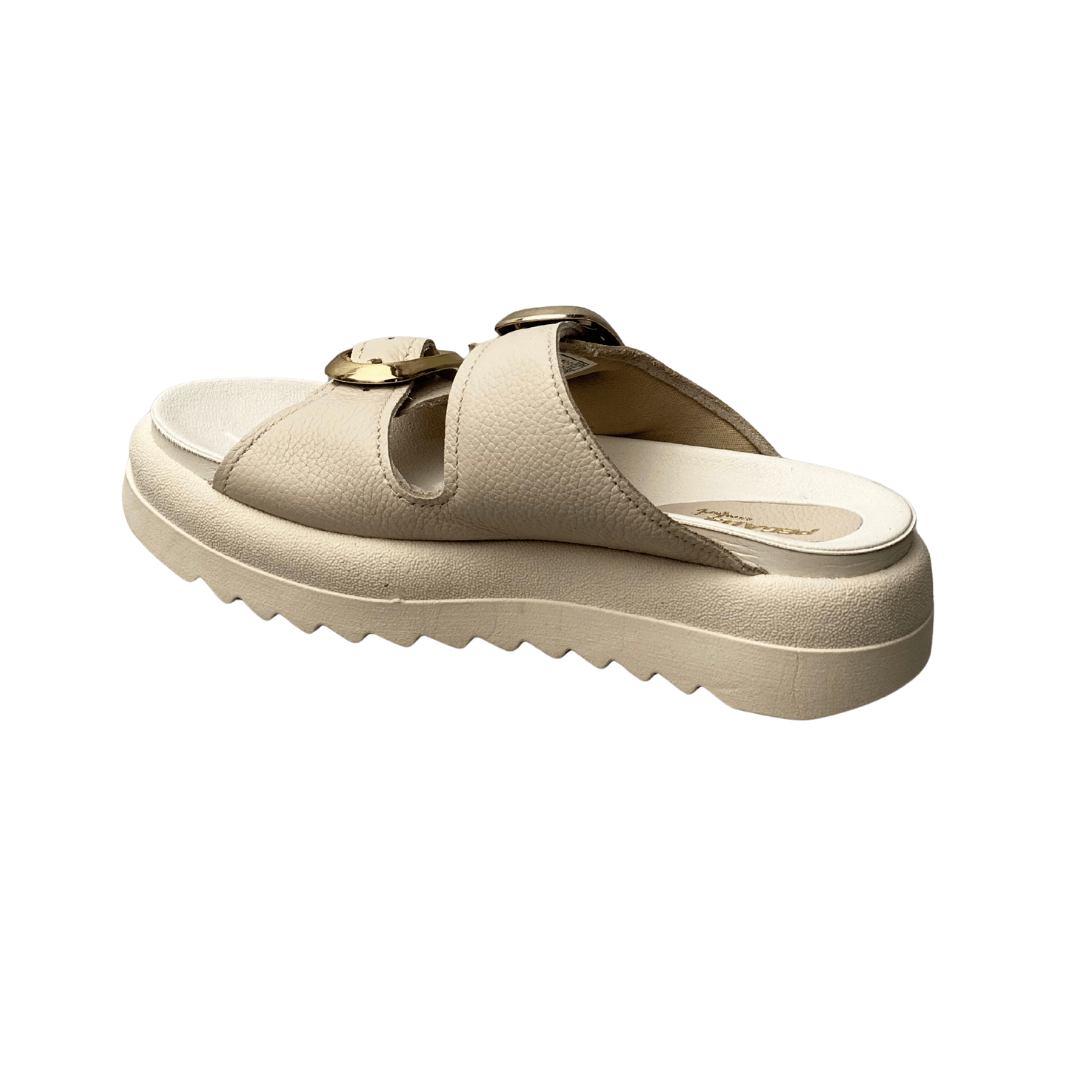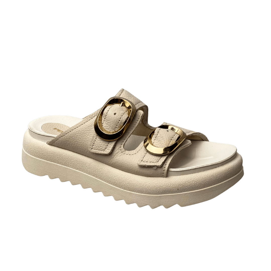 Duas fivelas douradas ajustáveis, que proporcionam melhor encaixe e um visual moderno e sofisticado.