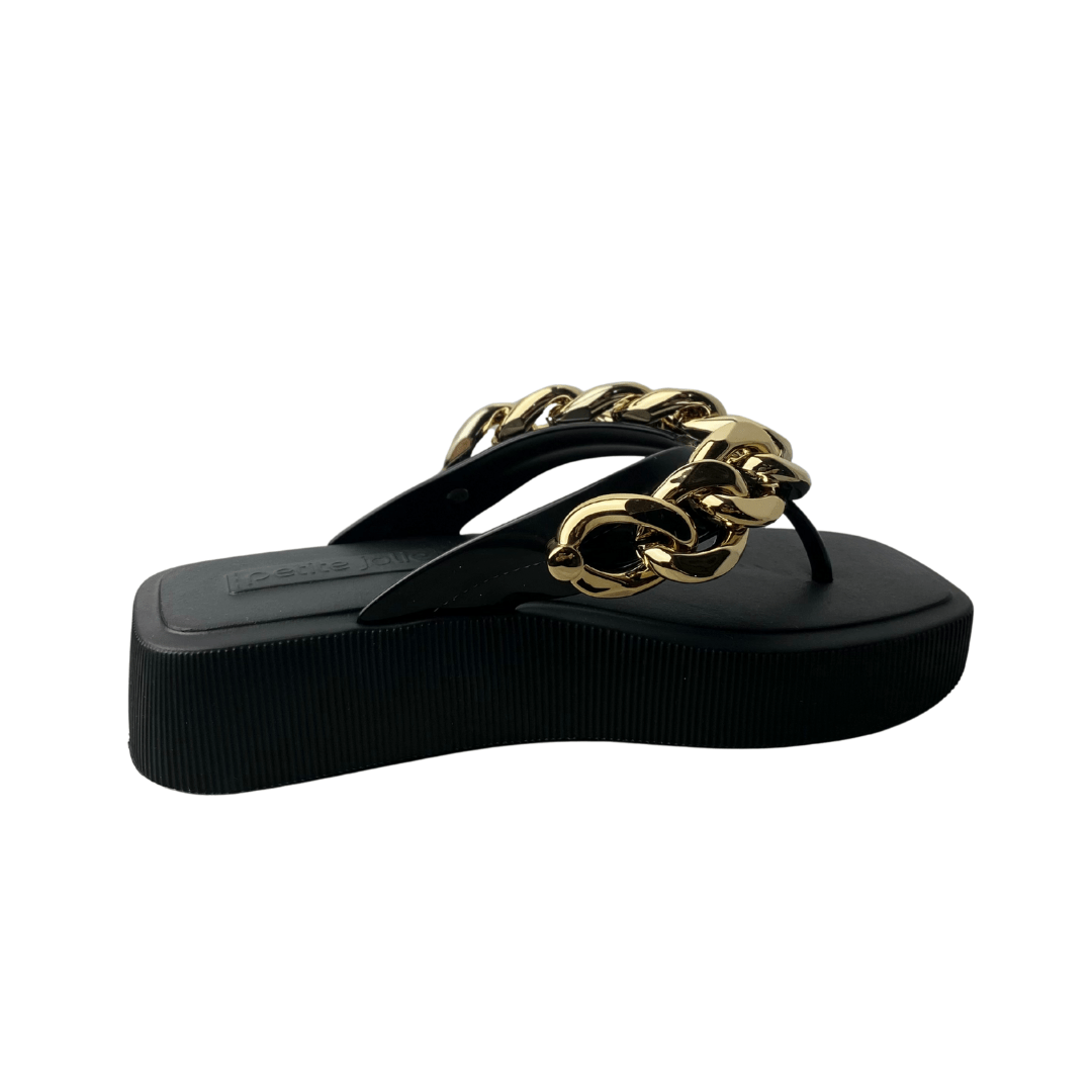 Tamanco Petite Jolie Feminina Preta Corrente Dourada – Elegância e conforto em um só passo