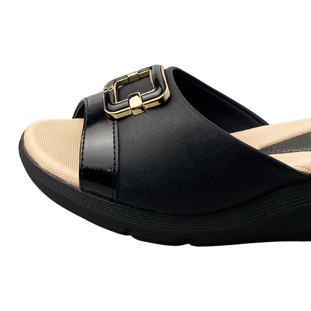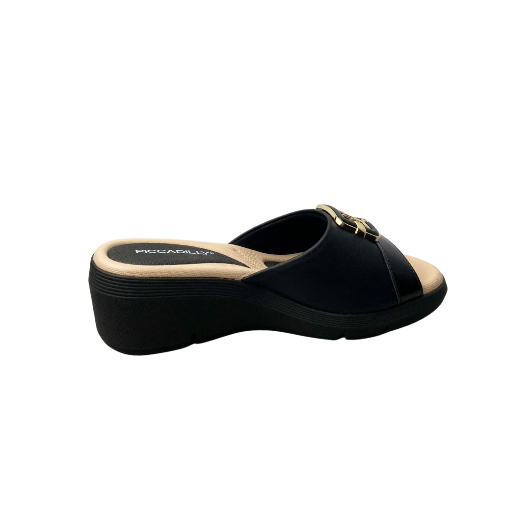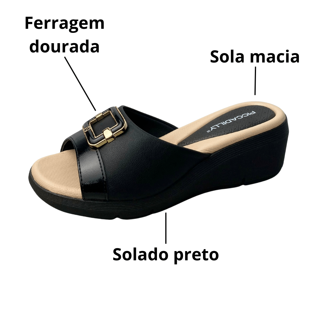 Tamanco Piccadilly Feminina Preto com Detalhe Dourado