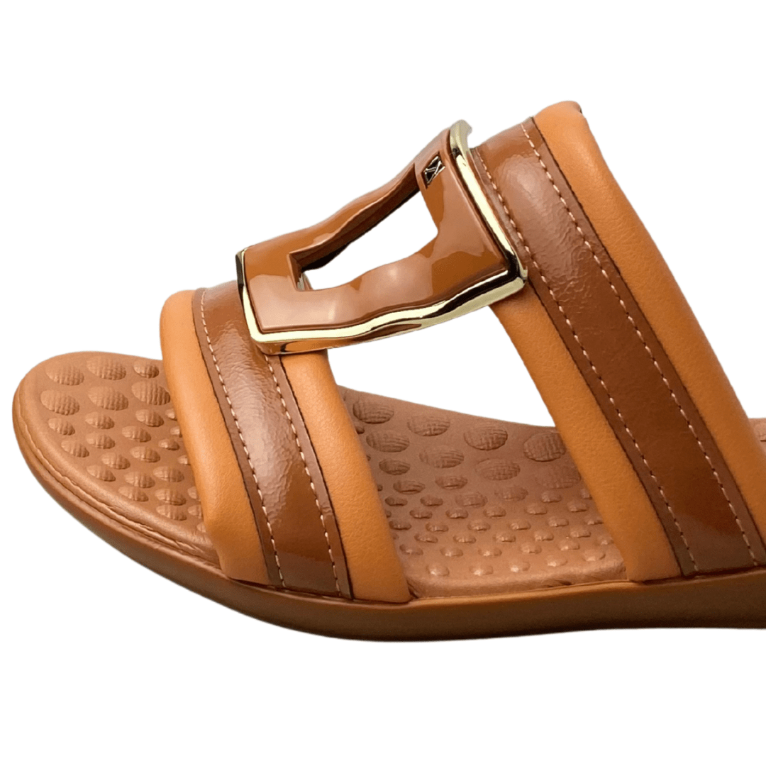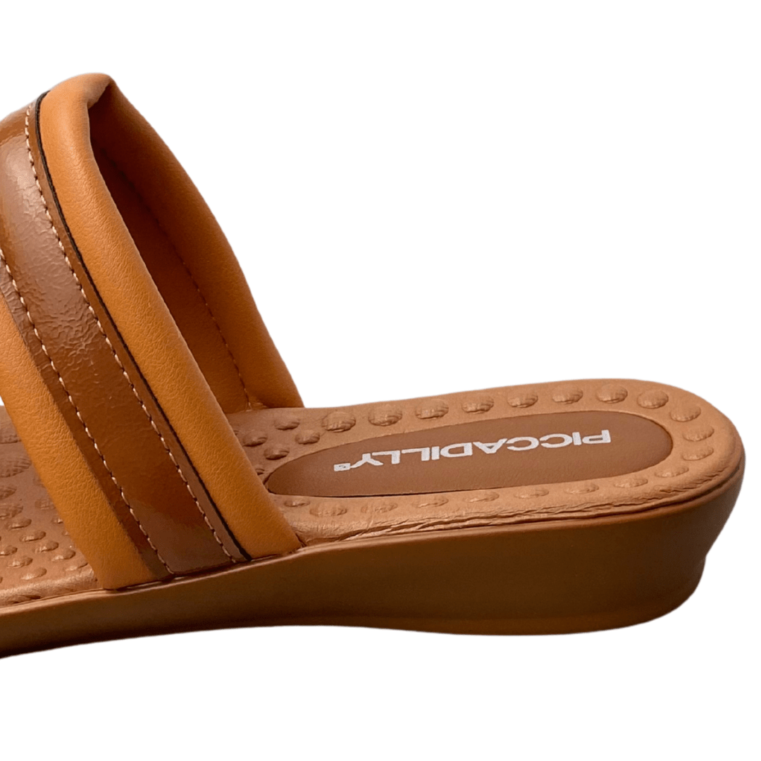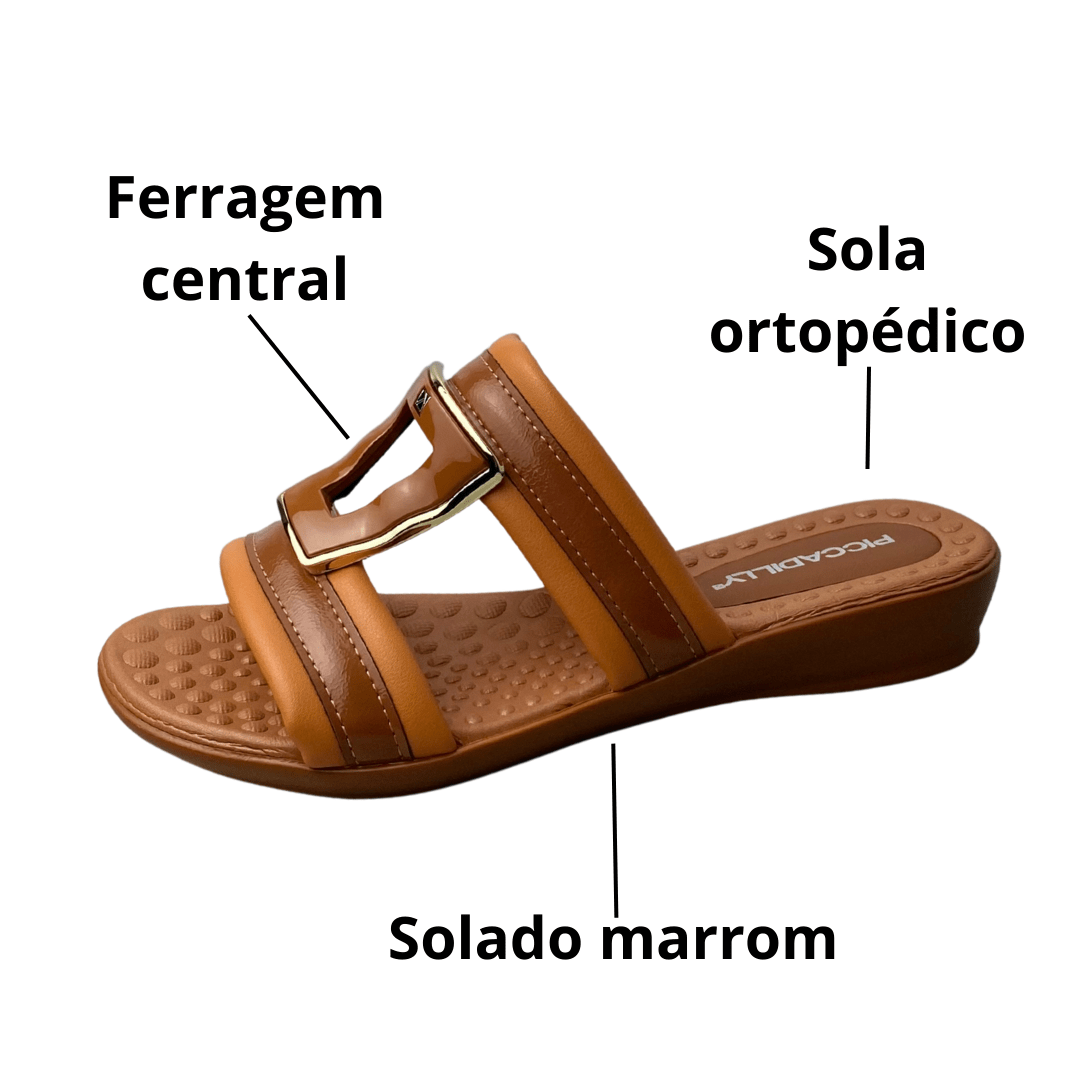 Design elegante com tiras largas que oferecem firmeza.