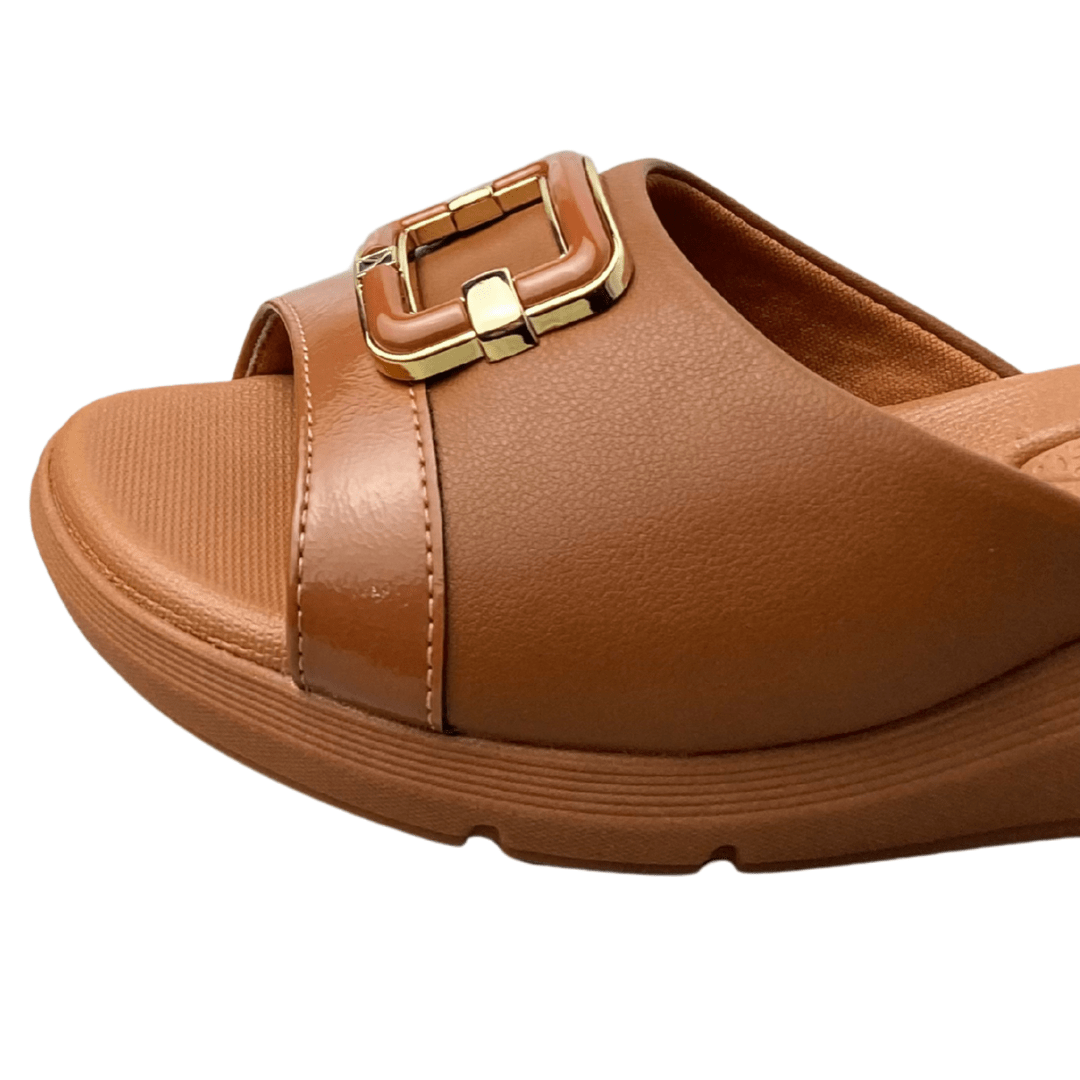 Tamanco Piccadilly Feminina Ocre com Detalhe Dourado