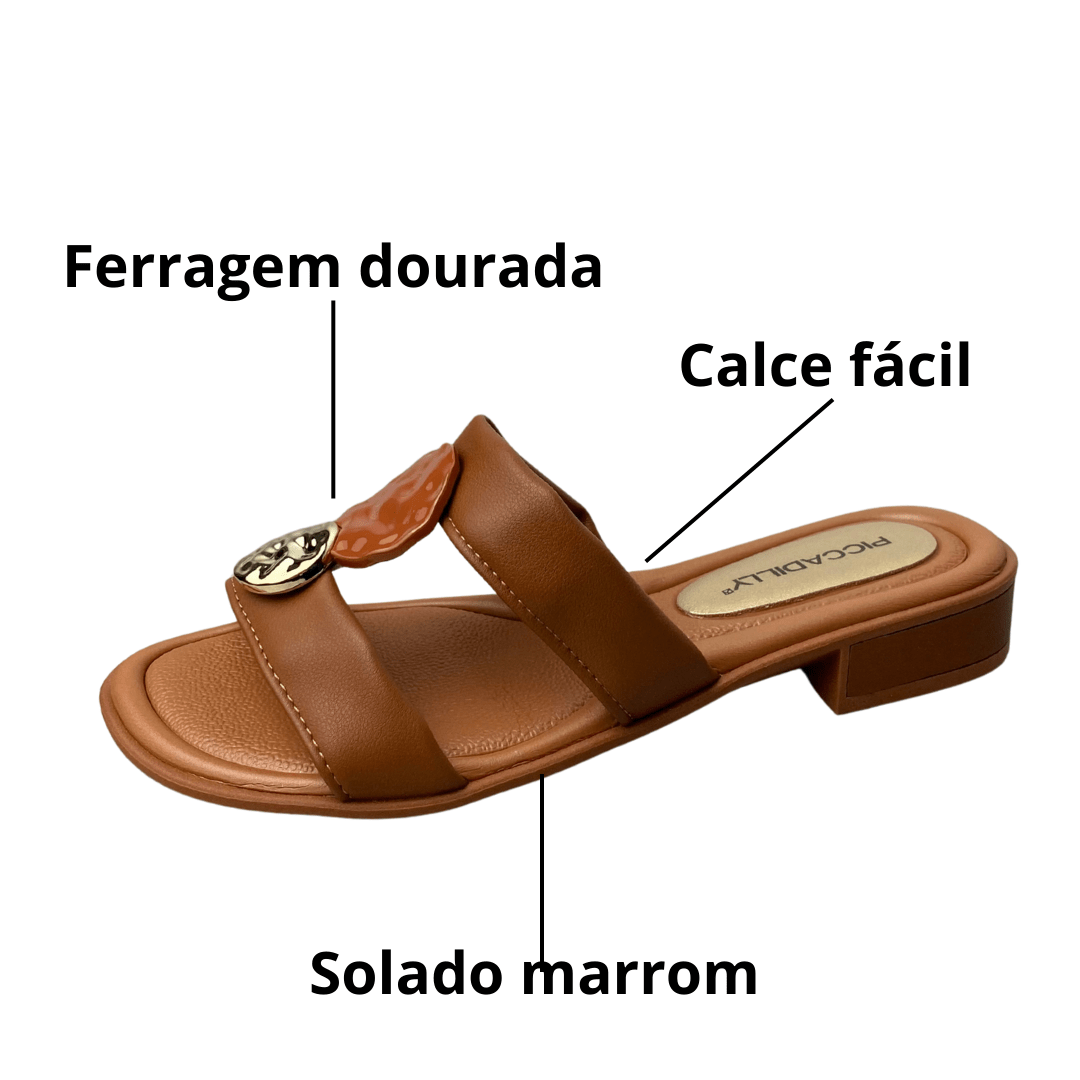 Tamanco Piccadilly Feminino Ocre Ferragem Dourada