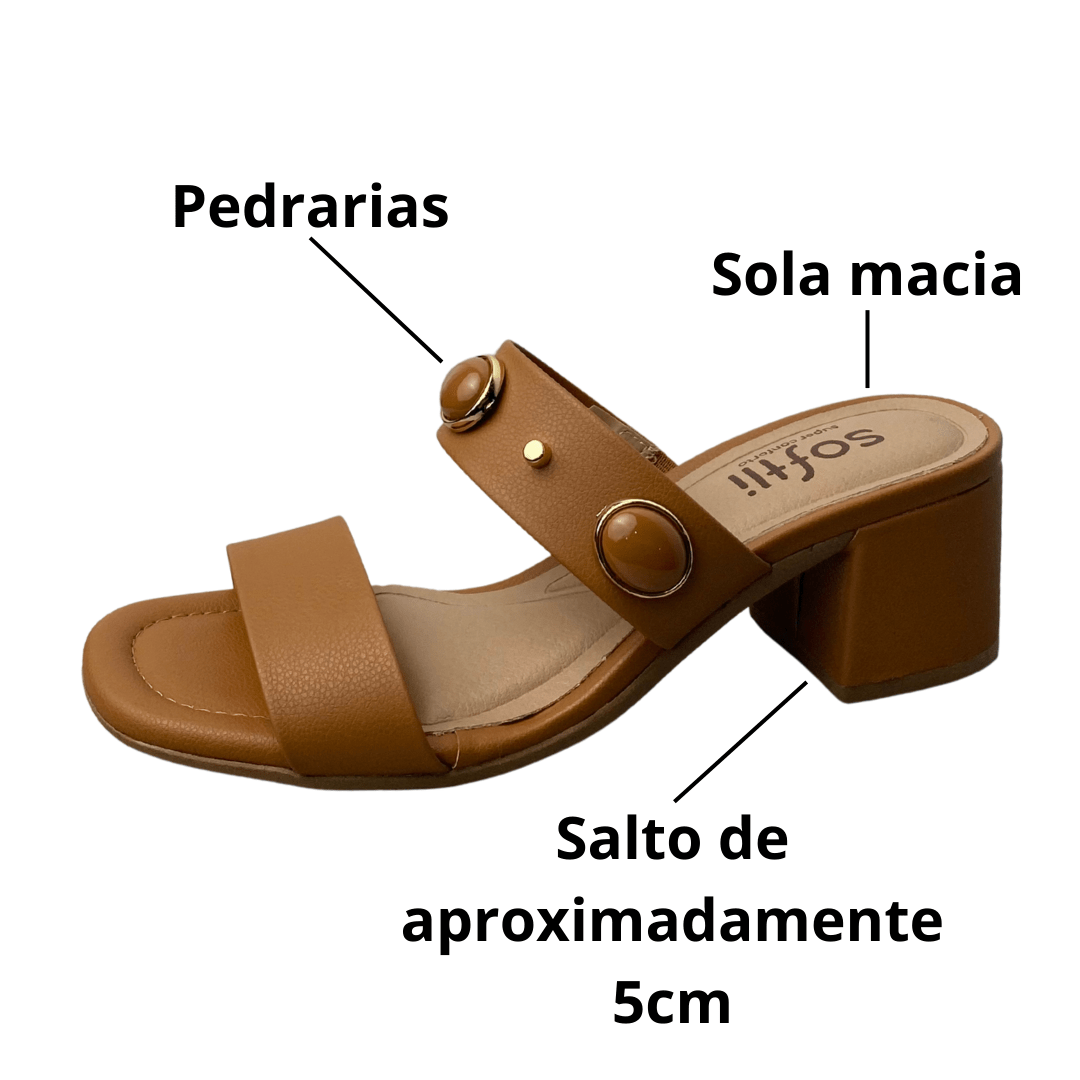 Conforto garantido para o dia todo, graças ao salto médio e estável.