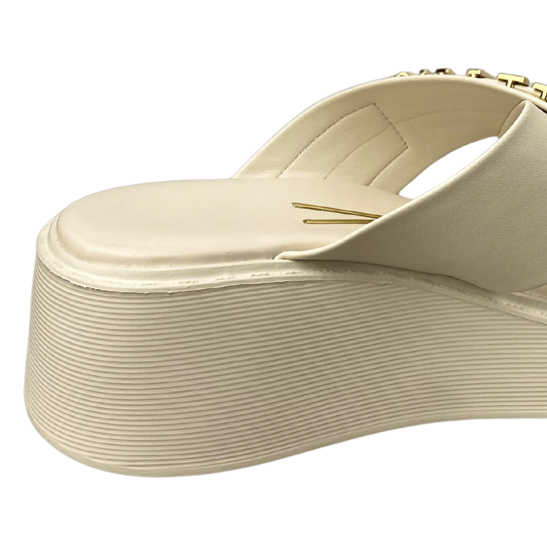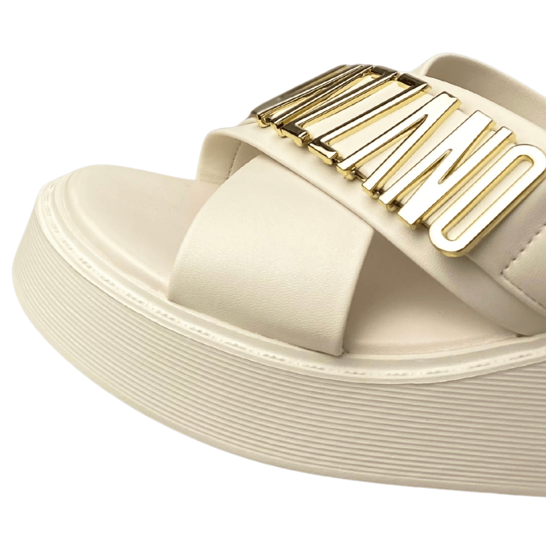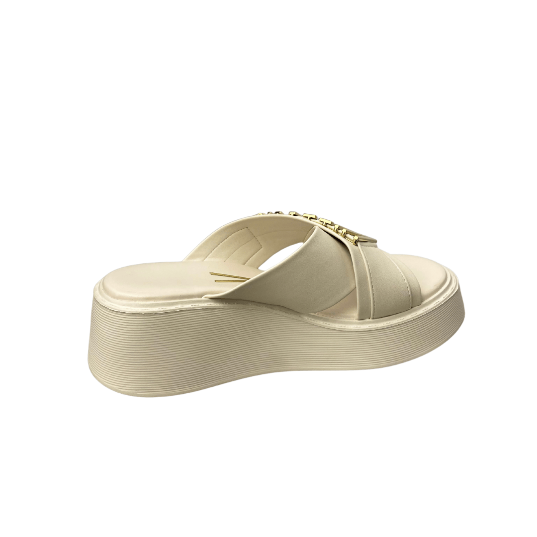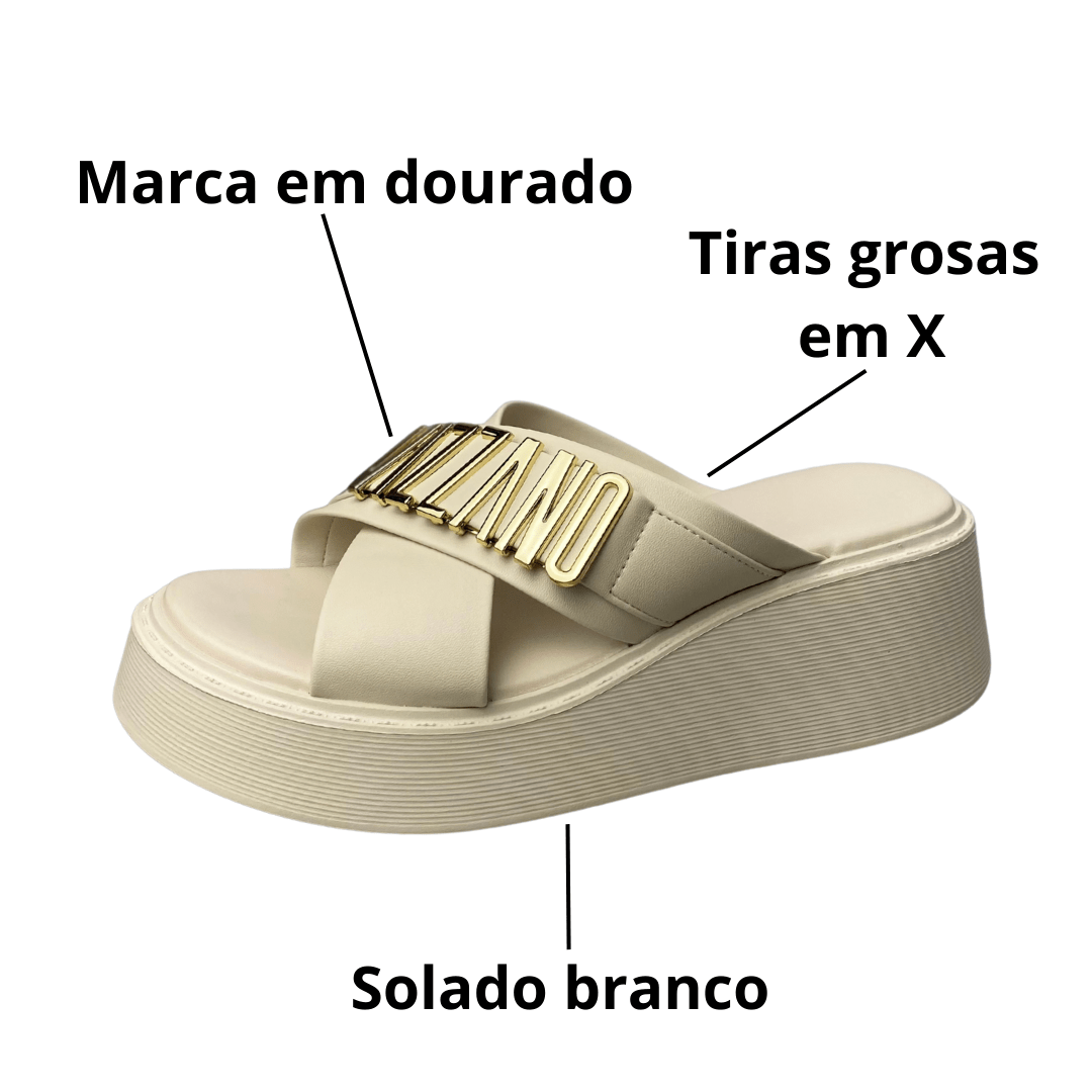 Design com tiras cruzadas que garantem firmeza nos pés.