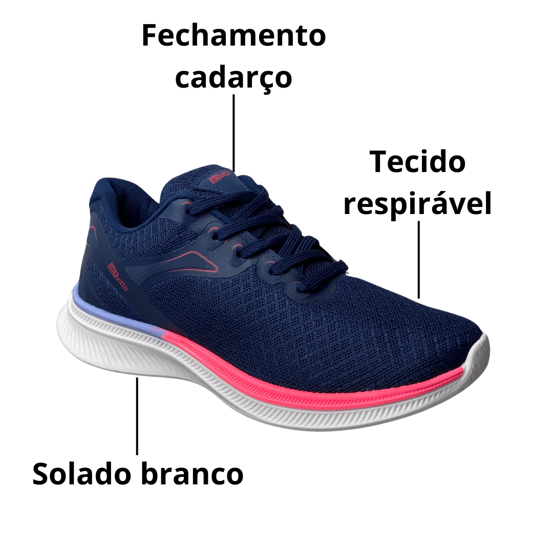 O Tênis Actvitta Feminino Marinho é a escolha perfeita para quem busca um calçado "confortável, estiloso e lindo". Com um design dinâmico em azul profundo e detalhes em rosa neon, ele foi projetado para oferecer leveza e reduzir o impacto a cada passo, sendo o companheiro ideal para mulheres ativas que valorizam a praticidade com um toque fashion.