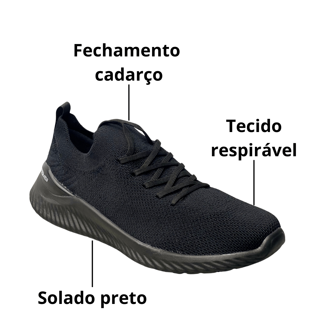Ambiente de Trabalho: Ideal para locais de trabalho com código de vestimenta casual ou esportivo, onde um tênis preto pode ser usado com mais sobriedade.