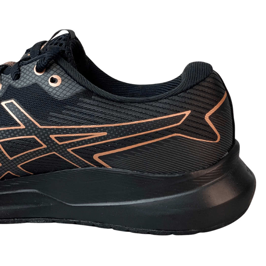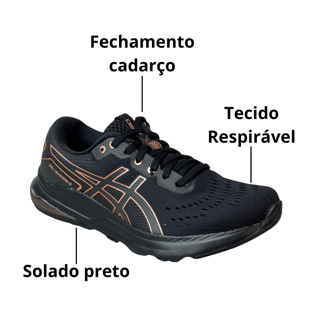 Versatilidade Estética: A cor preta com detalhes em bronze permite que o tênis transite perfeitamente da academia para looks urbanos casuais.