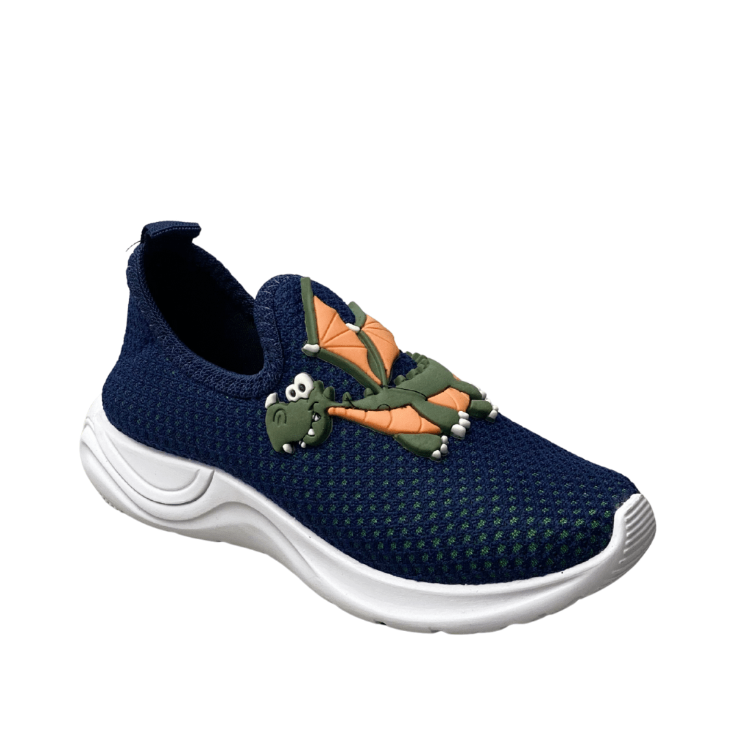 Fator Lúdico (Aventura de Dinossauro): O aplique divertido e detalhado de Dinossauro (Pterodáctilo) transforma o tênis, estimulando a imaginação e tornando-o o sapato favorito da criança para todas as aventuras.