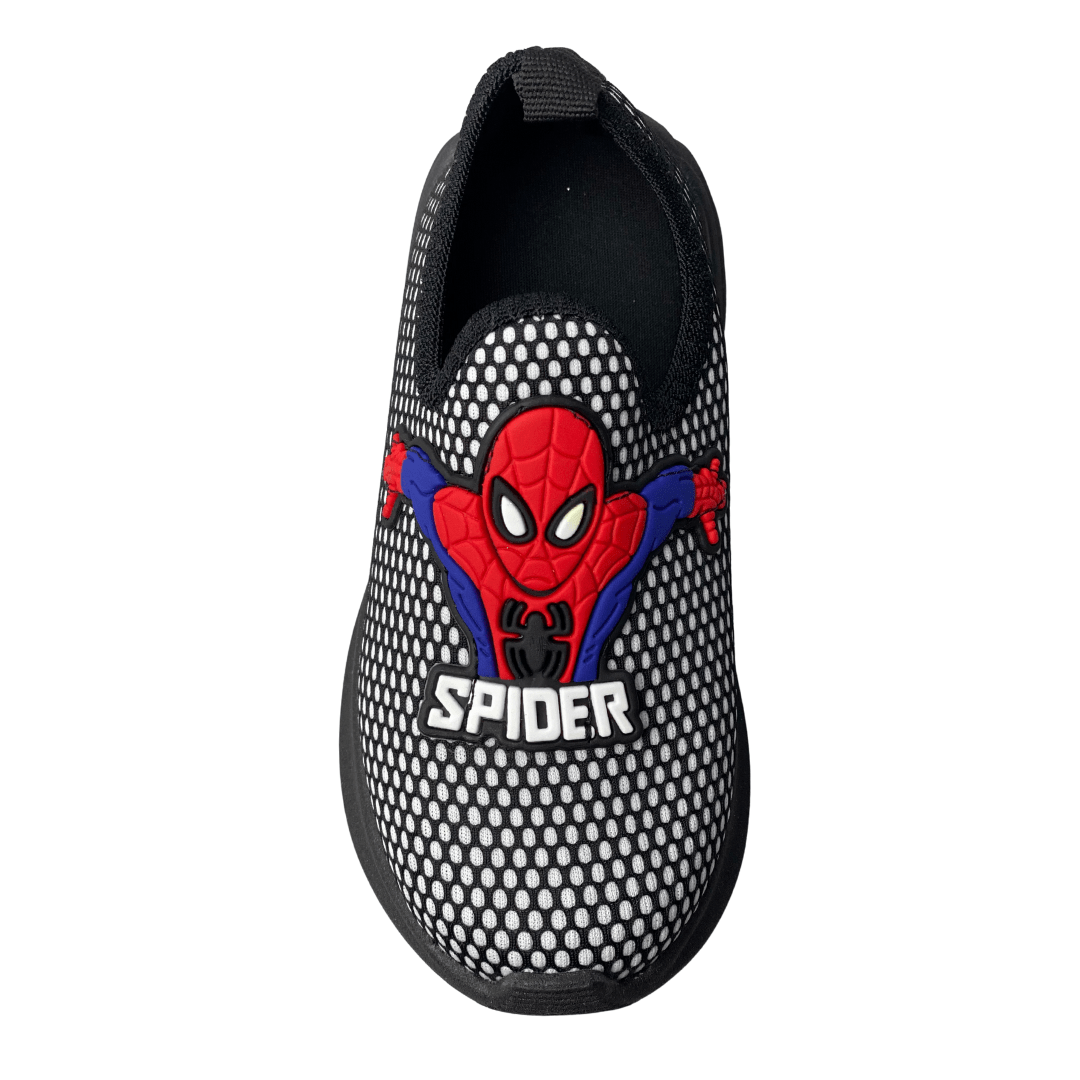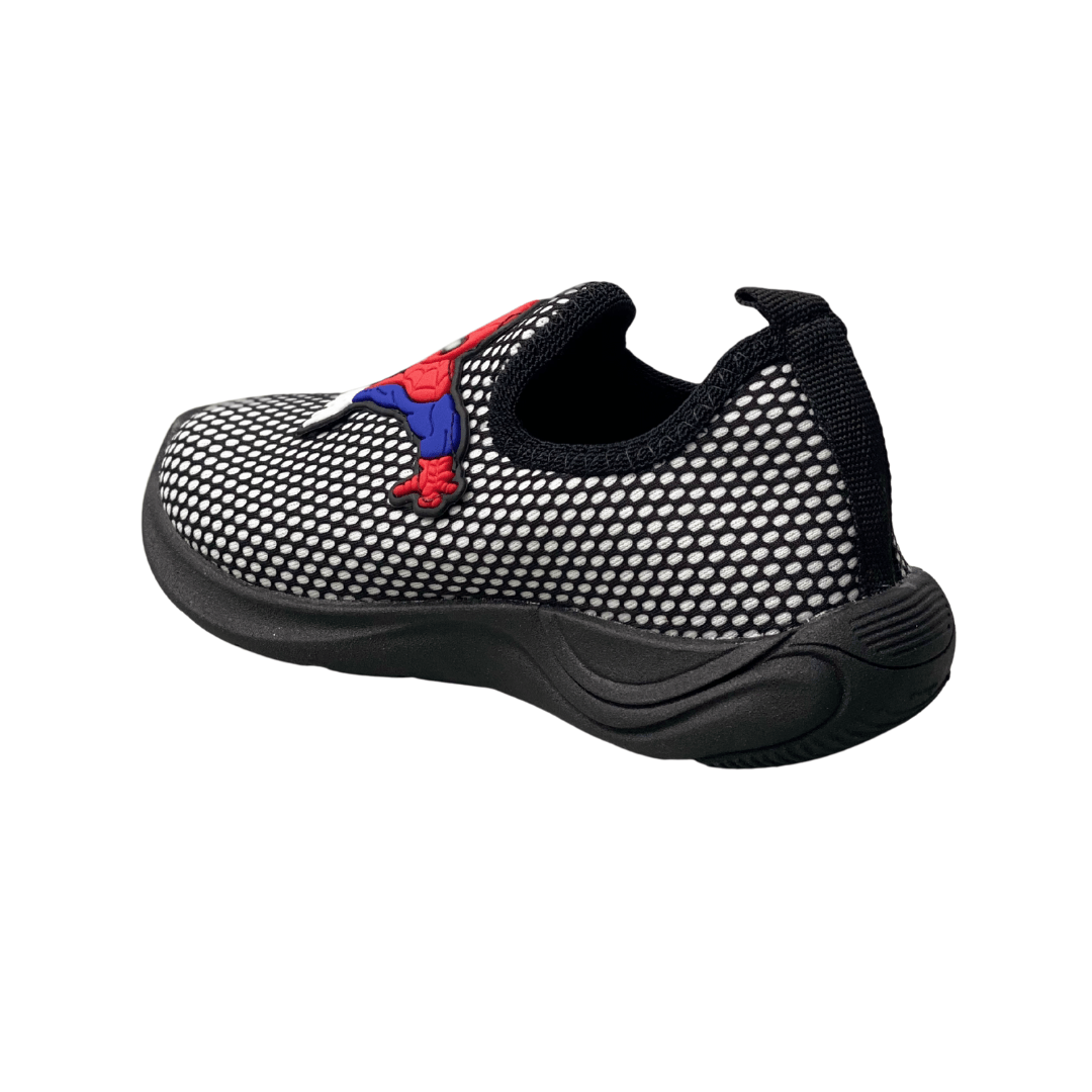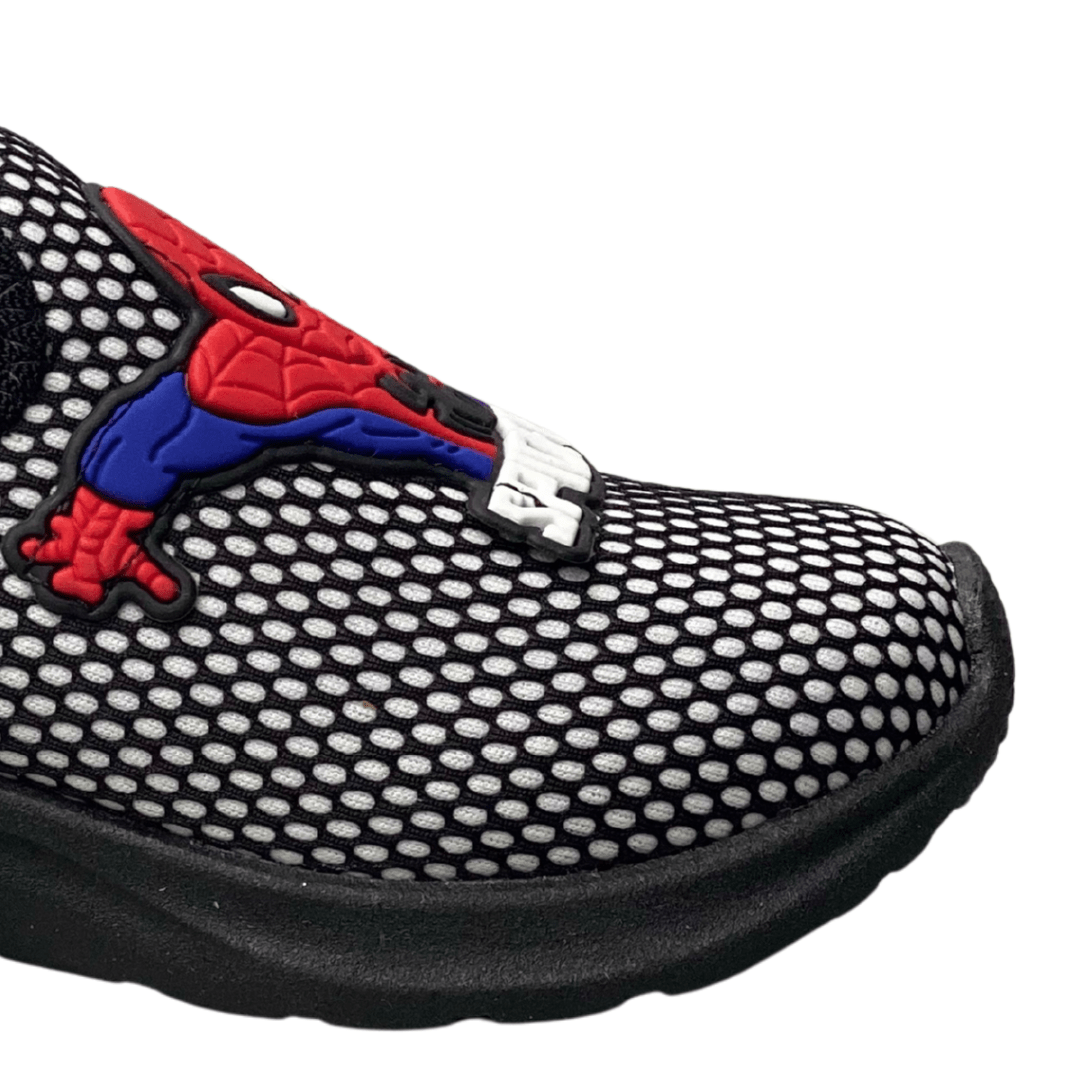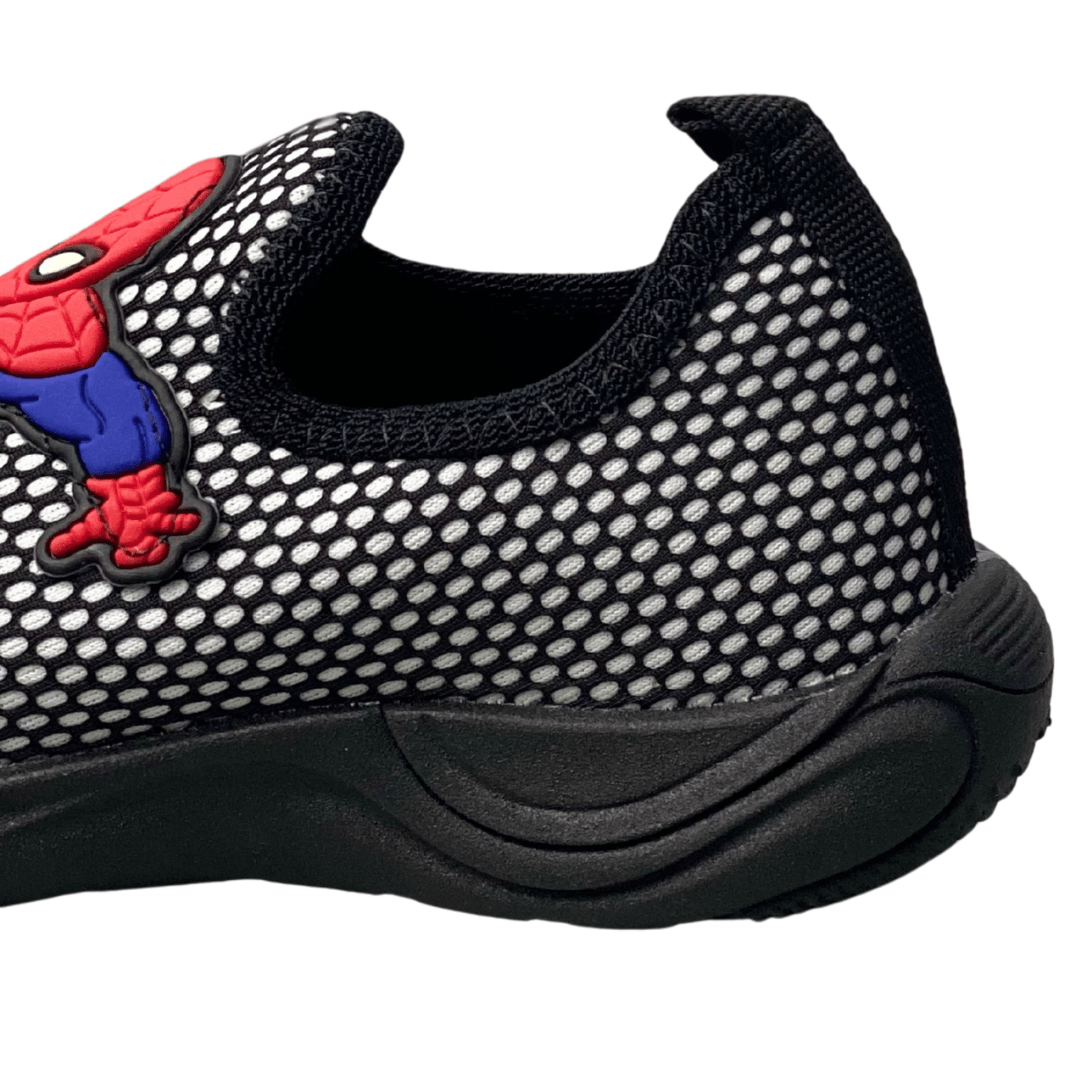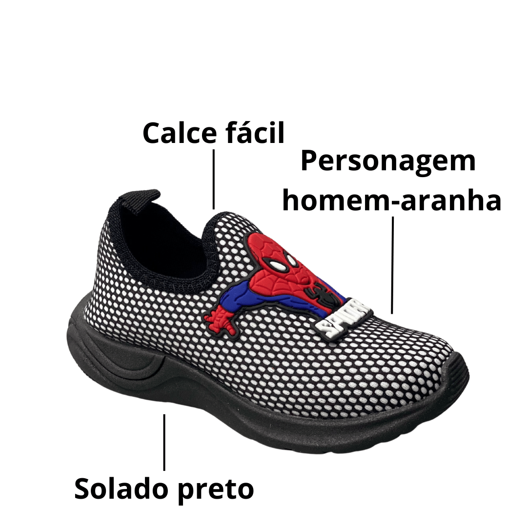 Fator Lúdico (Poder de Super-Herói): O aplique vibrante do Homem-Aranha transforma o tênis, incentivando a criança a se sentir forte e pronta para a aventura.