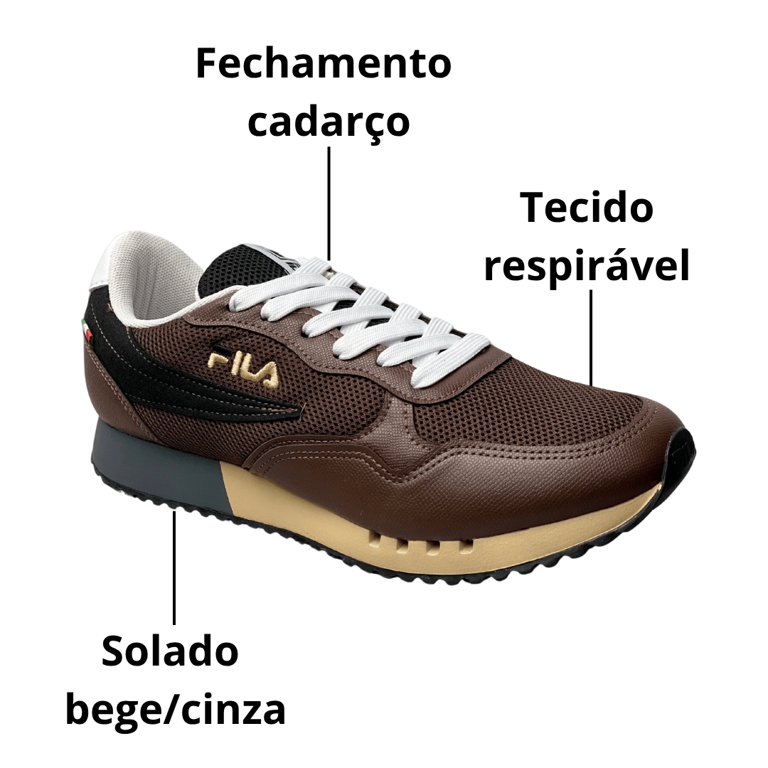 Estilo Distinto e Moderno: O tom marrom escuro confere uma elegância casual única, fugindo do tradicional preto/branco. Com o DNA retrô de corrida da Fila, ele garante um visual autêntico e contemporâneo.