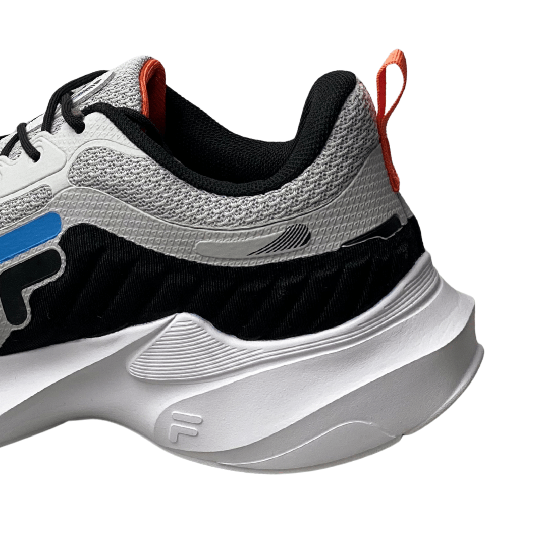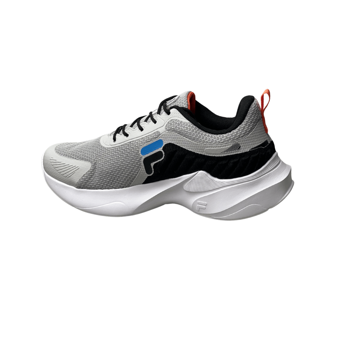 Estilo Esportivo Moderno: O visual runner (de corrida) em prata (cinza claro) com detalhes em preto e azul proporciona um look esportivo e autêntico, refletindo o DNA de performance da Fila.