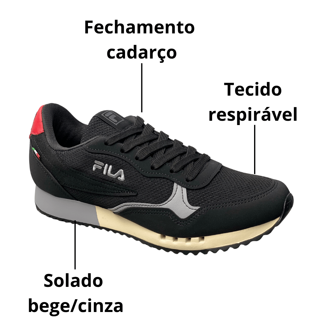 Tênis Fila Masculino Preto Euro Jogger Sport II Cadarço