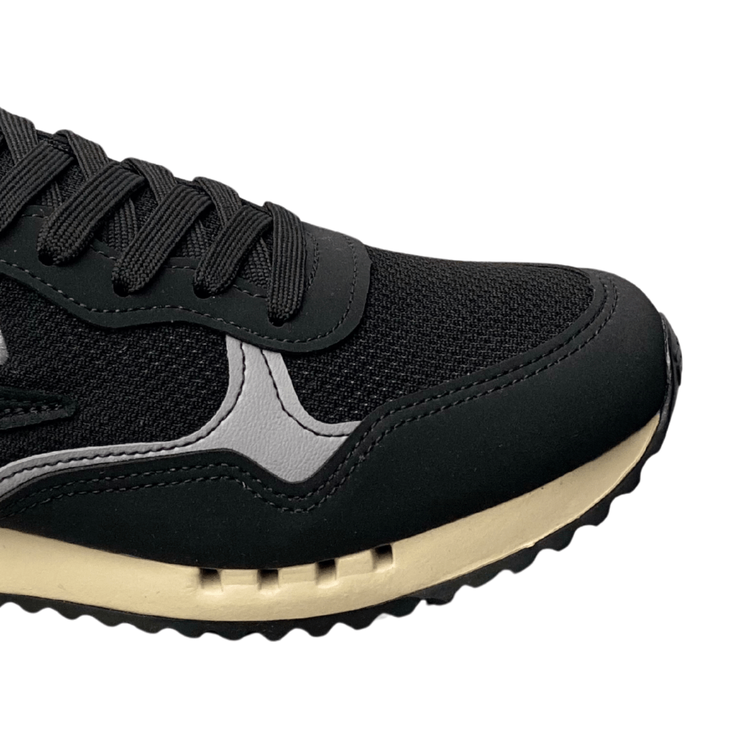 Estilo Imediato: Com um design retrô clássico e moderno, ele adiciona autenticidade e um toque esportivo aos seus looks diários. O preto versátil com detalhes em vermelho, cinza e a bandeira da Itália no calcanhar eleva seu visual.