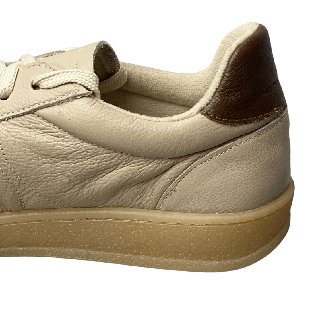 Fechamento: Cadarço tradicional em tom off-white para ajuste preciso.