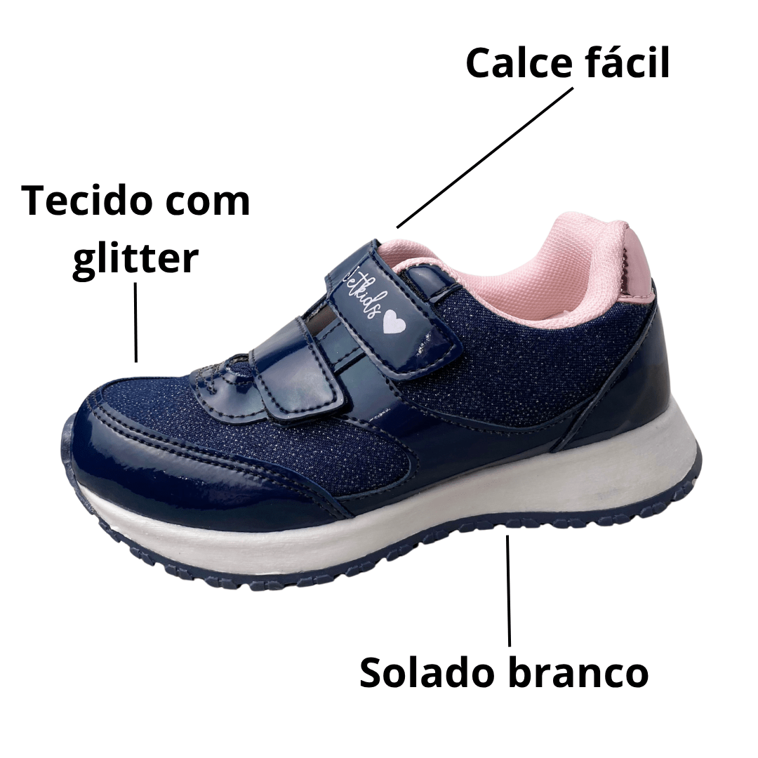 Tênis Jet Kids Feminino Infantil Azul Marinho Glitter – Conforto e brilho para o dia a dia das meninas