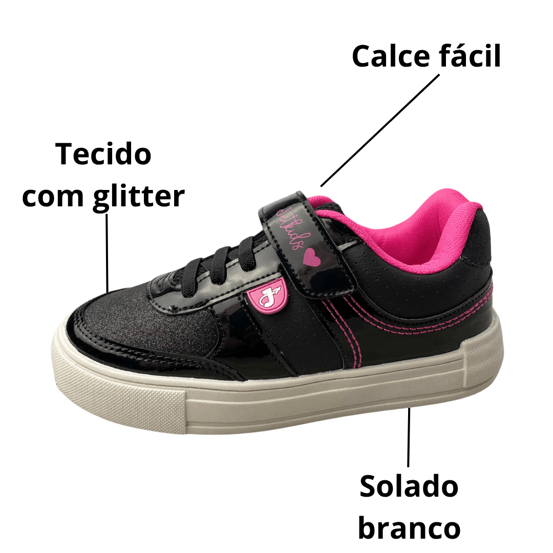 Tênis Jet Kids Feminino Infantil Preto Glitter – Conforto e brilho para o dia a dia das meninas