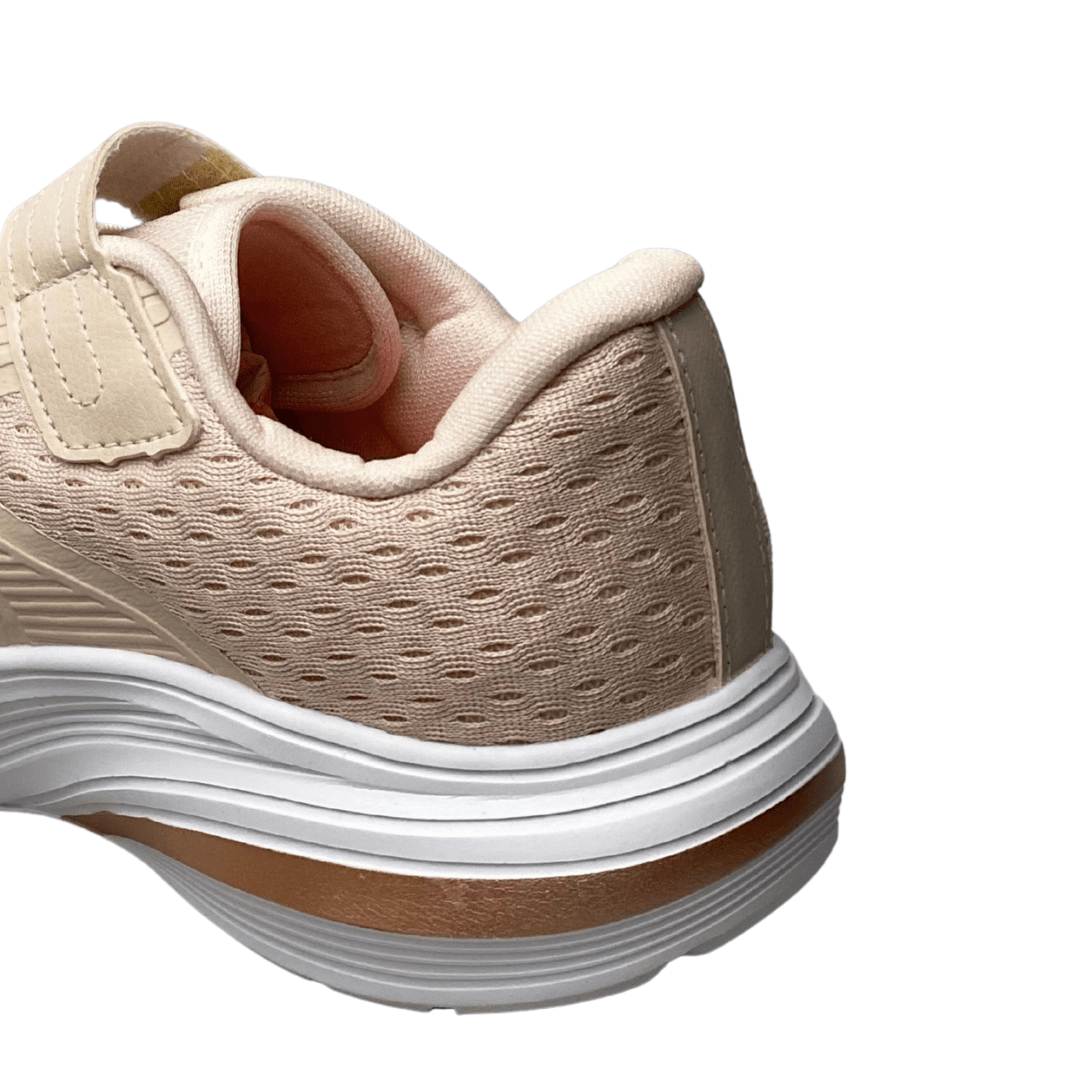 Respirável e anatômico: O cabedal com tecido vazado permite ventilação constante, enquanto a palmilha macia garante máximo conforto.