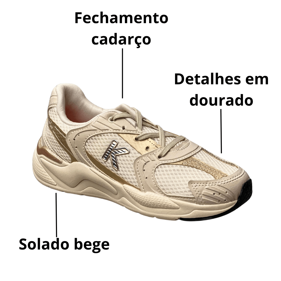 Tênis Kidy Infantil Feminino Marfim com Cadarço