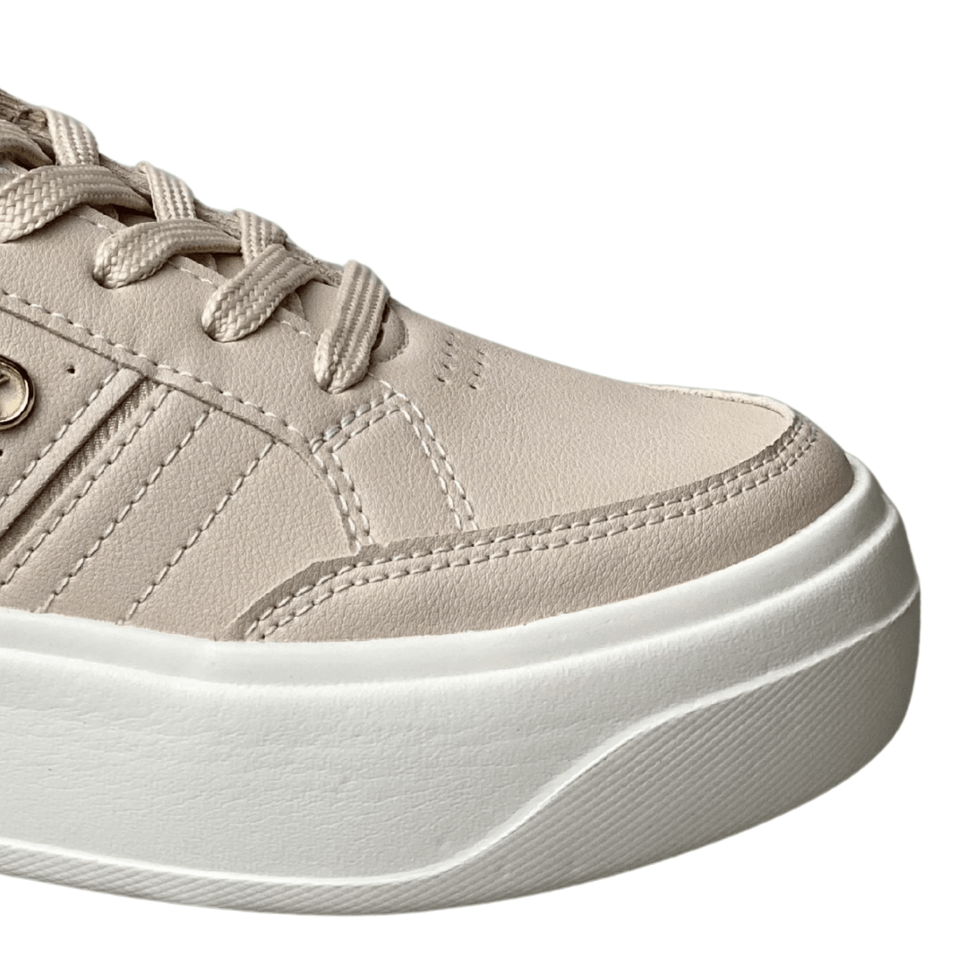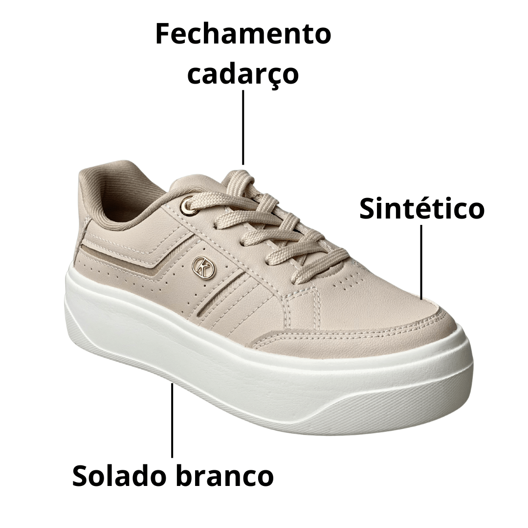 Solado: Flatform emborrachado com acabamento tratorado discreto para melhor tração.