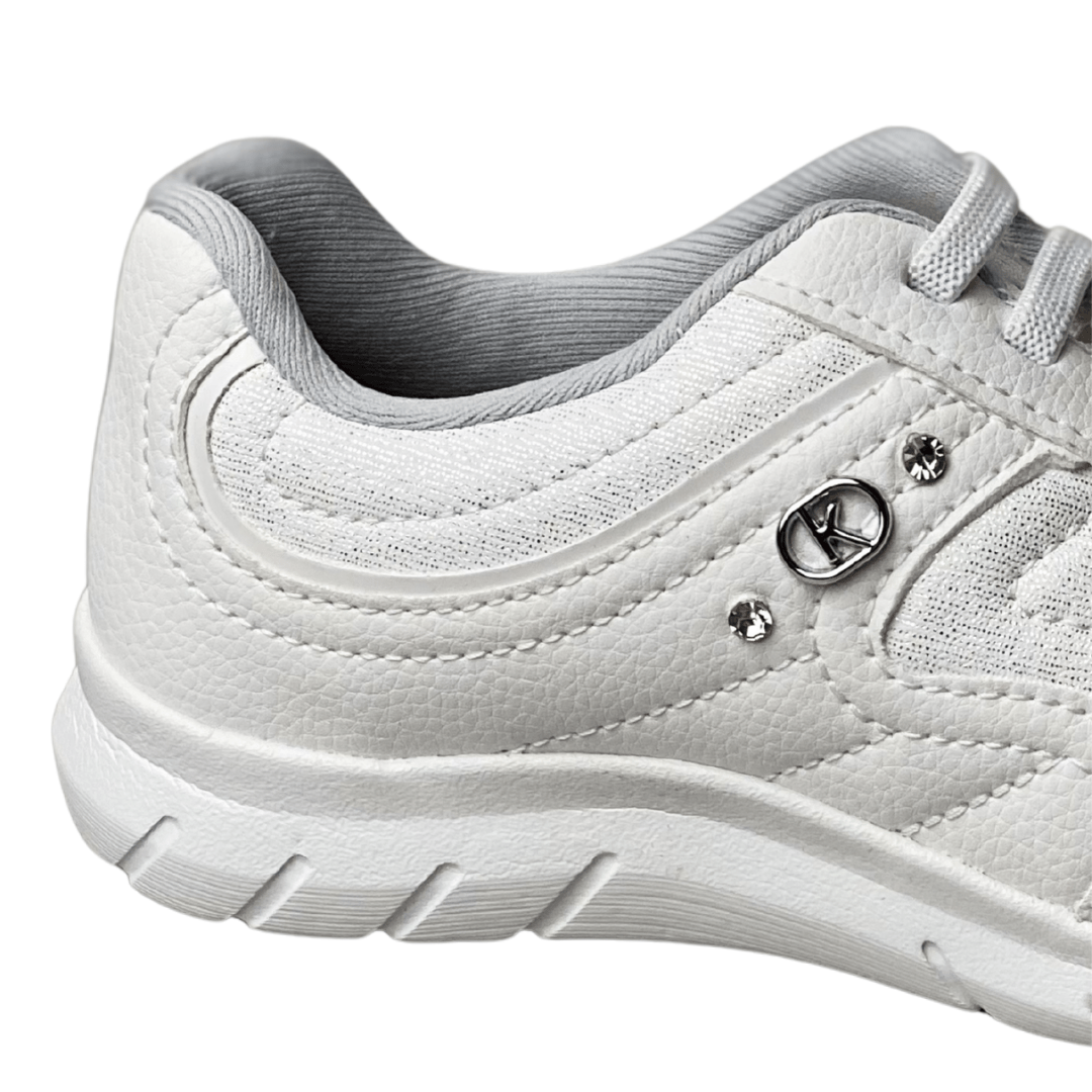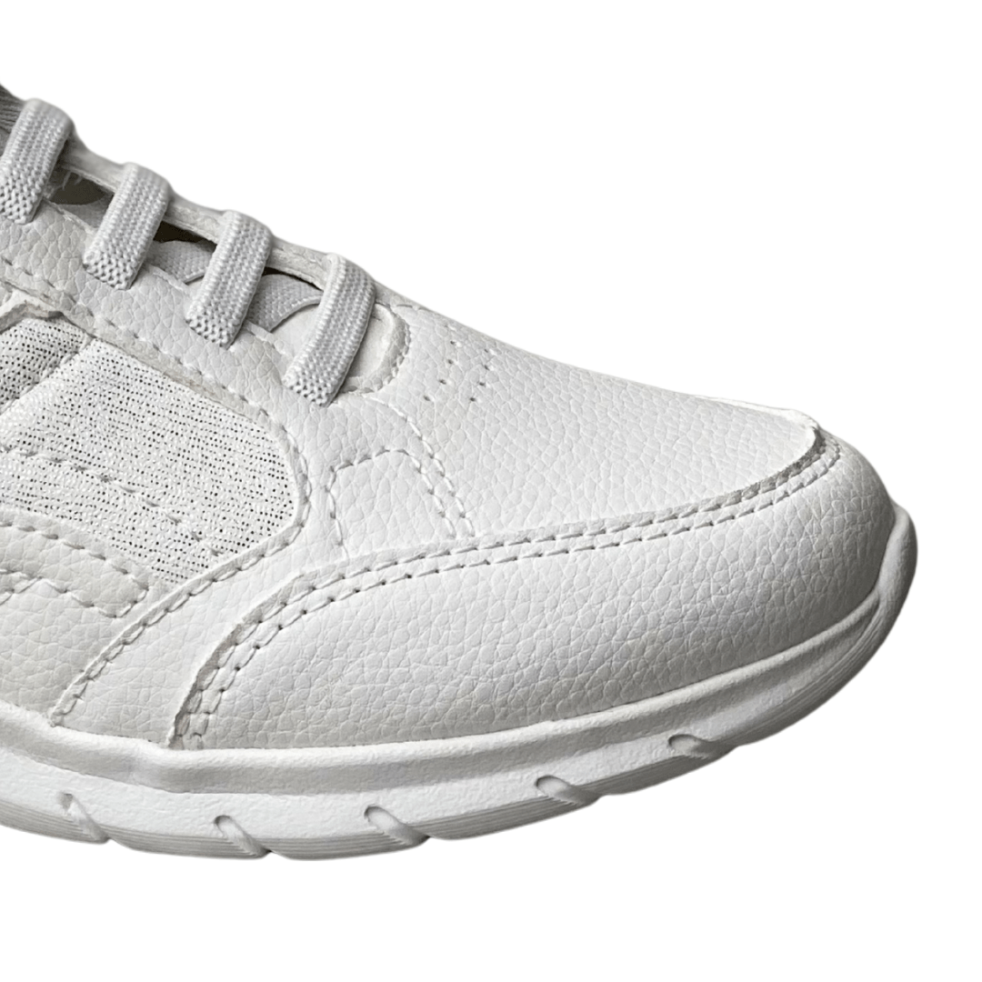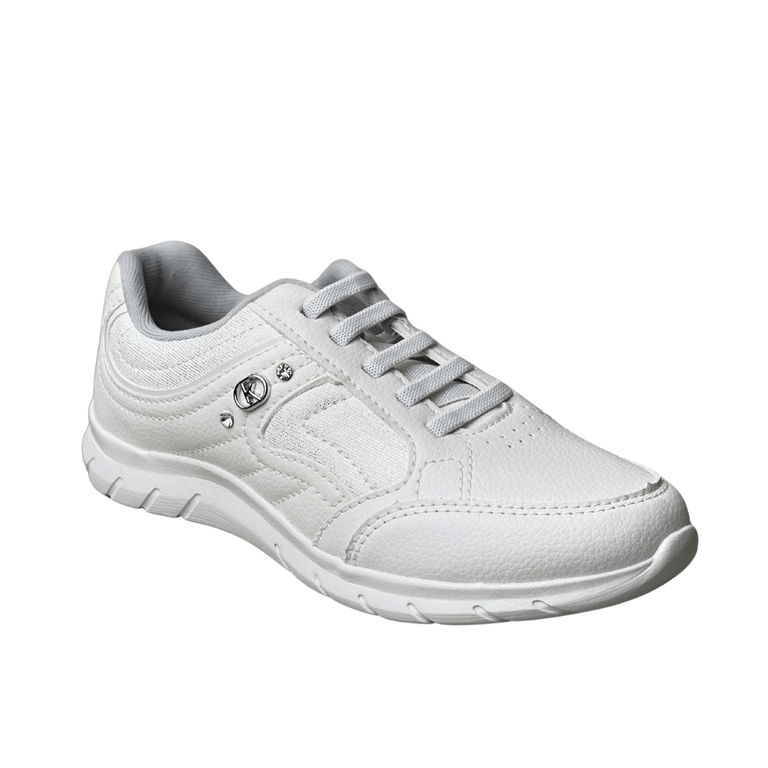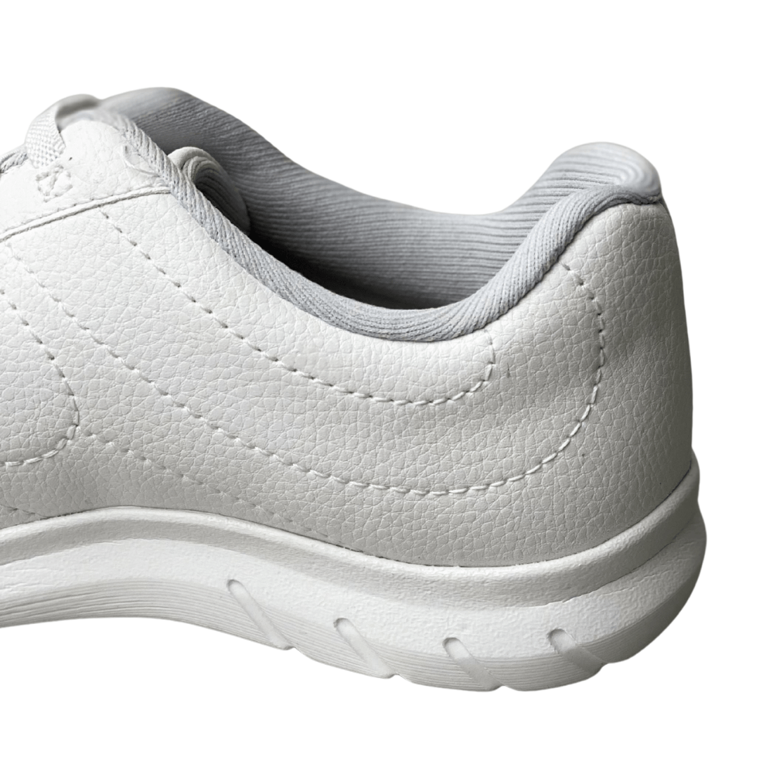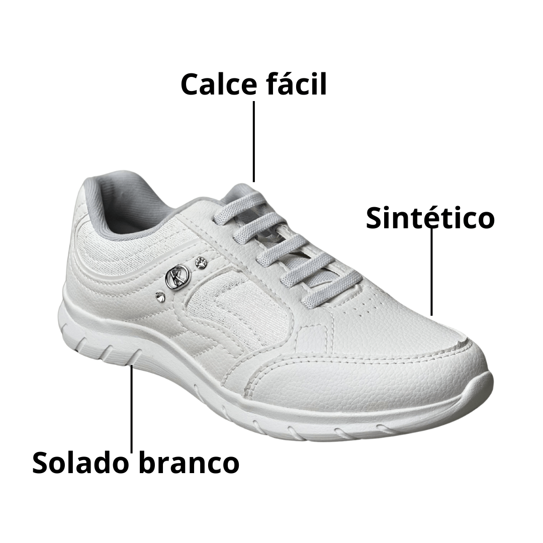 Estilo Atemporal: O acabamento em branco com detalhes sutis garante que o tênis nunca saia de moda e combine com todo o seu guarda-roupa.
