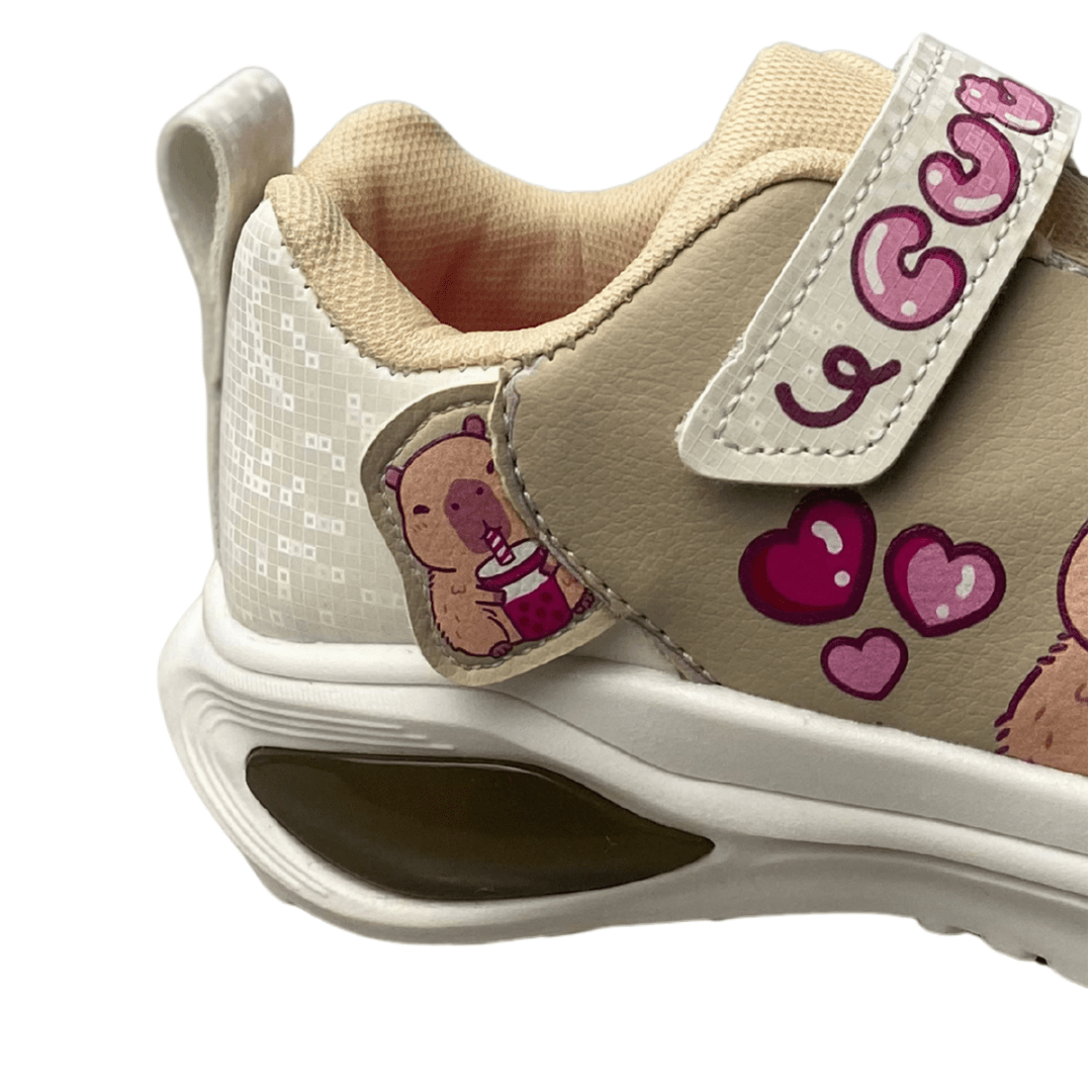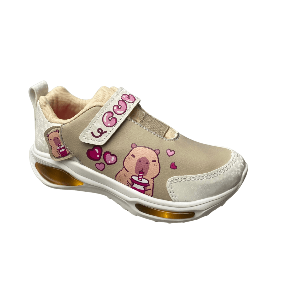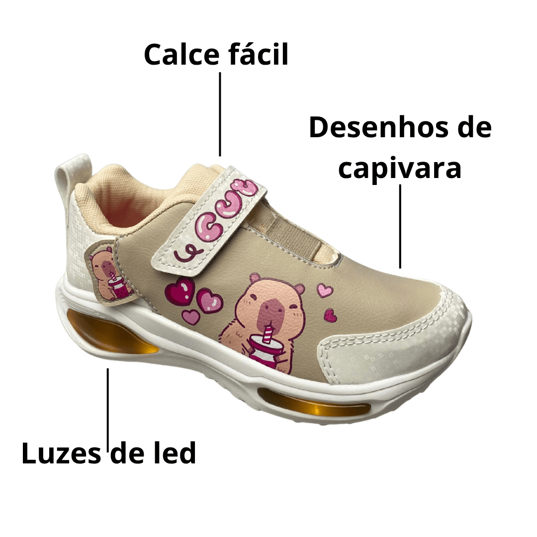 Modelo: Tênis Infantil Feminino com Estampa de Capivara e LED.