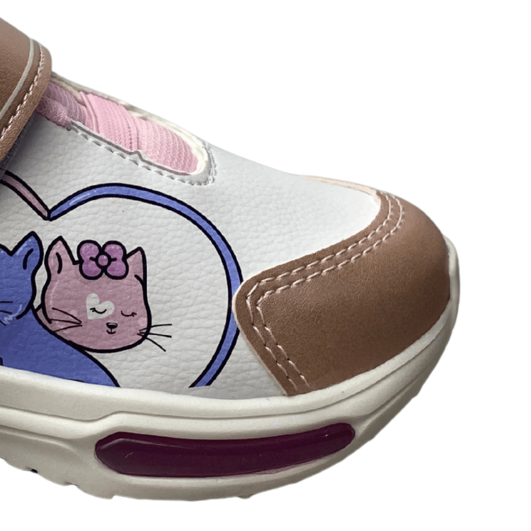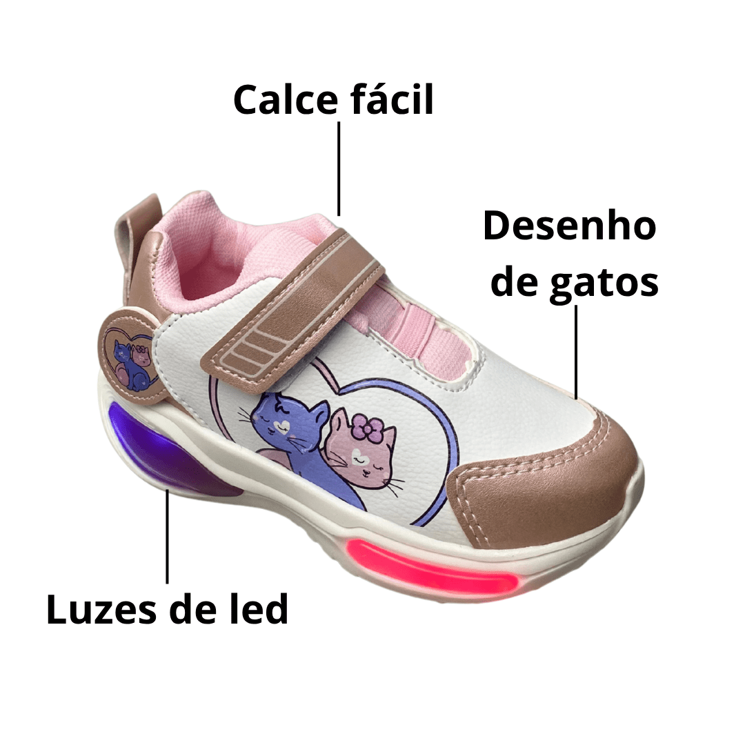 Modelo: Tênis Infantil Feminino com Estampa de Gatinhos e LED.