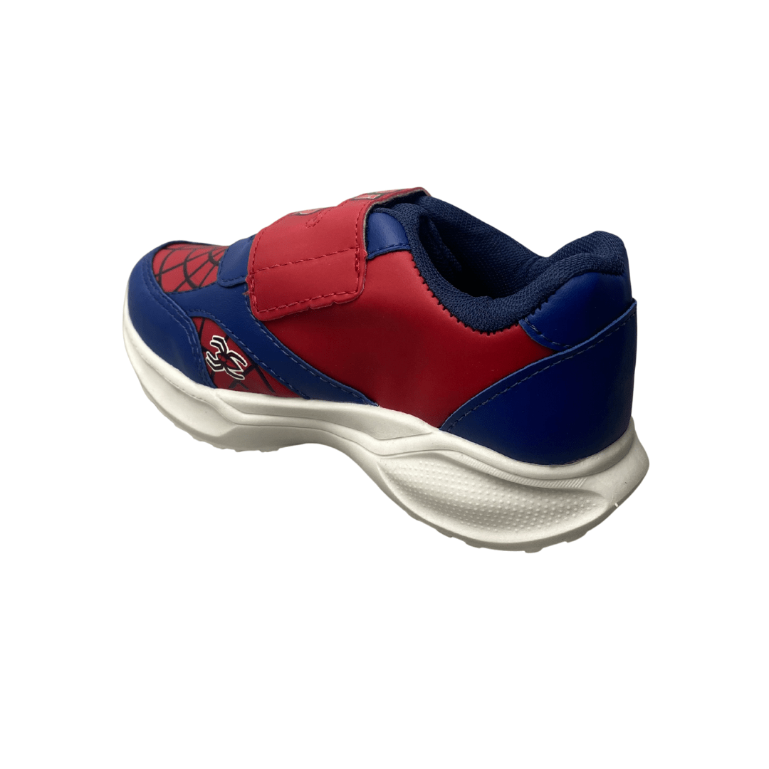 Design Exclusivo "Spider": As cores vibrantes (azul marinho e vermelho), o logo da aranha e a teia no cabedal tornam este tênis um item temático e estiloso, perfeito para os pequenos fãs do herói das teias.