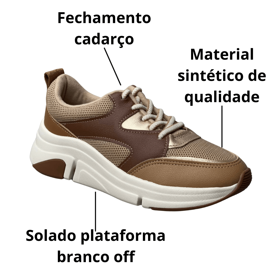 Fechamento: Cadarço de amarrar em tom bege para ajuste preciso.