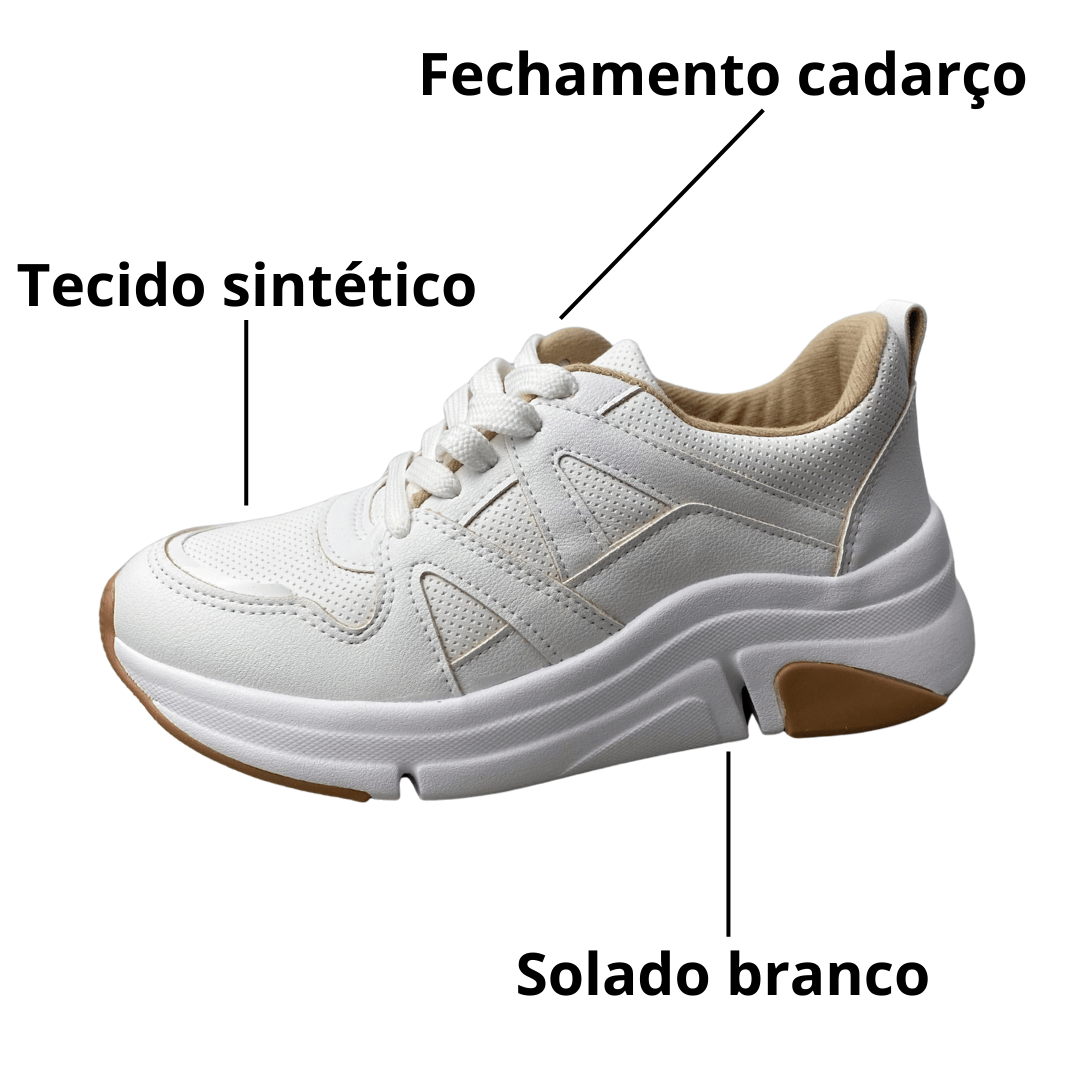 Ajuste os cadarços até encontrar a firmeza ideal. Perfeito para compor looks casuais, esportivos e urbanos, combinando com calças, shorts, vestidos e saias.